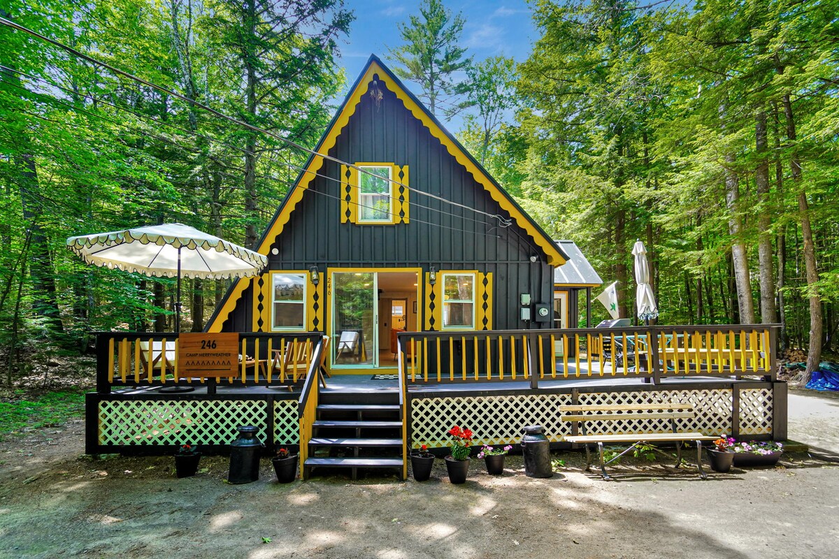 Pabėkite iš miesto ir atsipalaiduokite „Camp Merryweather“. Mūsų A formos namas puikiai tinka romantiškai išvykai ar šeimos poilsiui su vaikais ir šunimis! Jei dirbate iš namų profesionalo, norinčio pabėgti nuo įprastos rutinos, pasirūpinsime jumis! Su pilnai įrengta darbo erdve ir patikimu didelės spartos internetu galite atsipalaiduoti nuo miesto spaudimo, kol vis dar palaikote ryšį. Mėgaukitės mūsų sūkurine vonia ir žaidimų kambariu Patirkite mūsų rojaus gabalėlį, nesigailėsite!