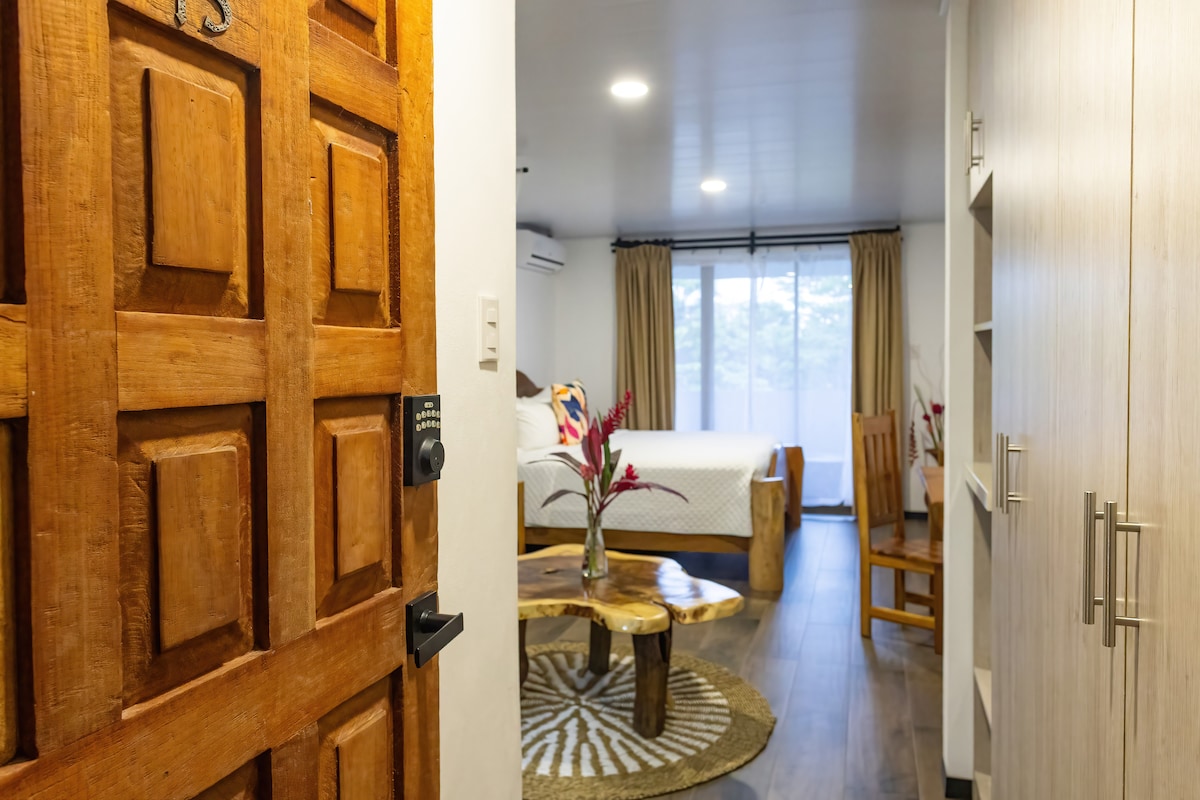 Enjoy a bright, comfortable room with a cozy queen bed and a spotless private bathroom—cleaned daily to hotel standards. 🍃 Your stay includes a fresh Costa Rican breakfast each morning and a free guided tour of Manuel Antonio National Park (tickets not included). We’re just minutes from the beach and the park entrance, surrounded by wildlife and tropical nature. Guests can also upgrade to our exclusive pass for up to 20% off tours, activities, restaurants, and more throughout Manuel Antonio.