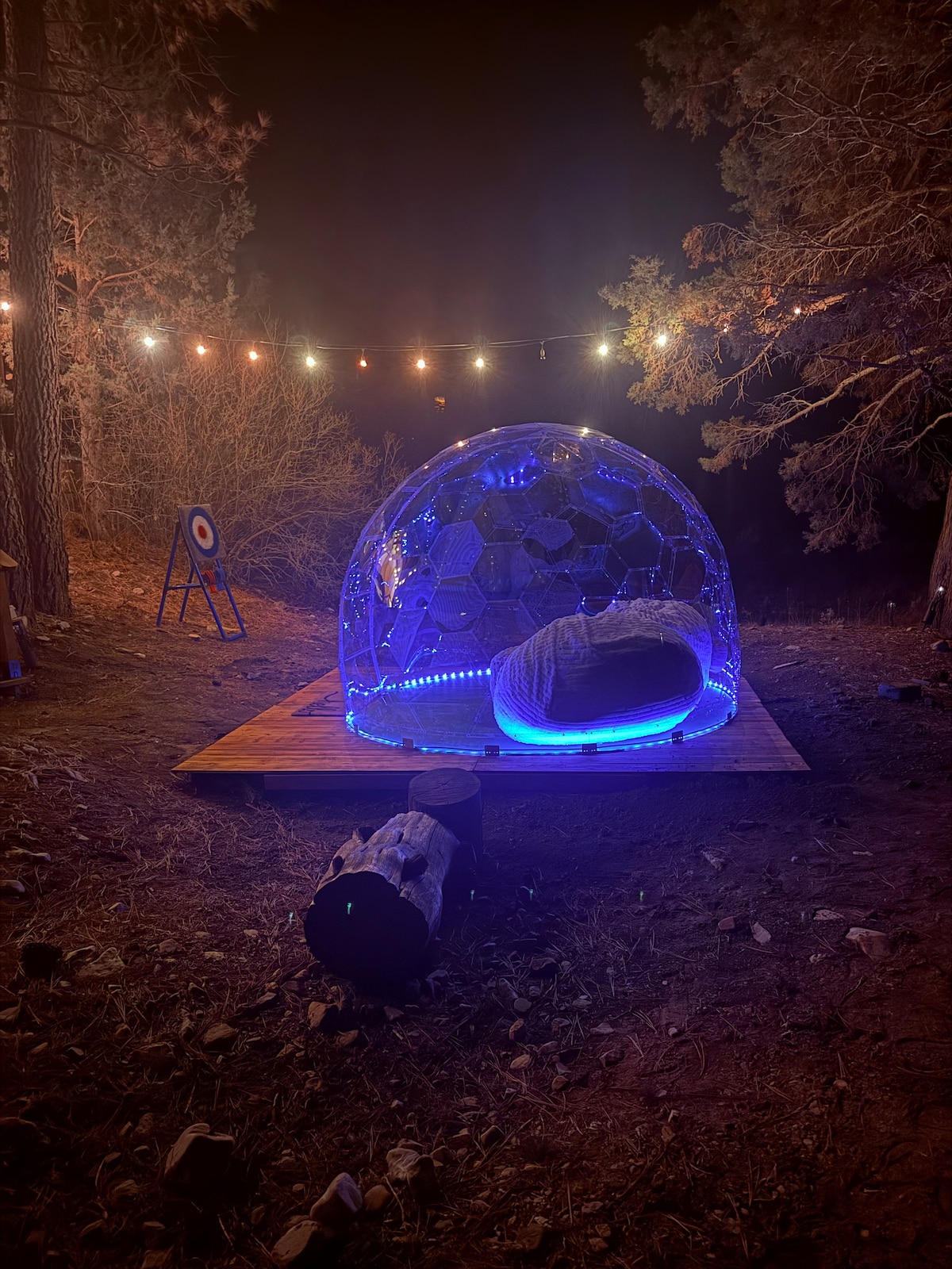 Ši juoda A formos trobelė yra įsikūrusi tarp pušynų Running Springs vietovėje, iš jos atsiveria ramūs medžių viršūnių vaizdai iš visų trijų aukštų. Šiltas amžiaus vidurio modernus dizainas – puiki romantiška vieta. Atsipalaiduokite jaukiame lofte, mėgaukitės vinilu ar filmu slaptame kino kambaryje ir atsipalaiduokite kartu naujoje statinės pavidalo pirtyje. Puikiai tinka poroms, švenčiančioms jubiliejų, medaus mėnesį, ypatingą išvyką arba tiesiog mėgaujantis ramiu, prasmingu laiku kartu miške.