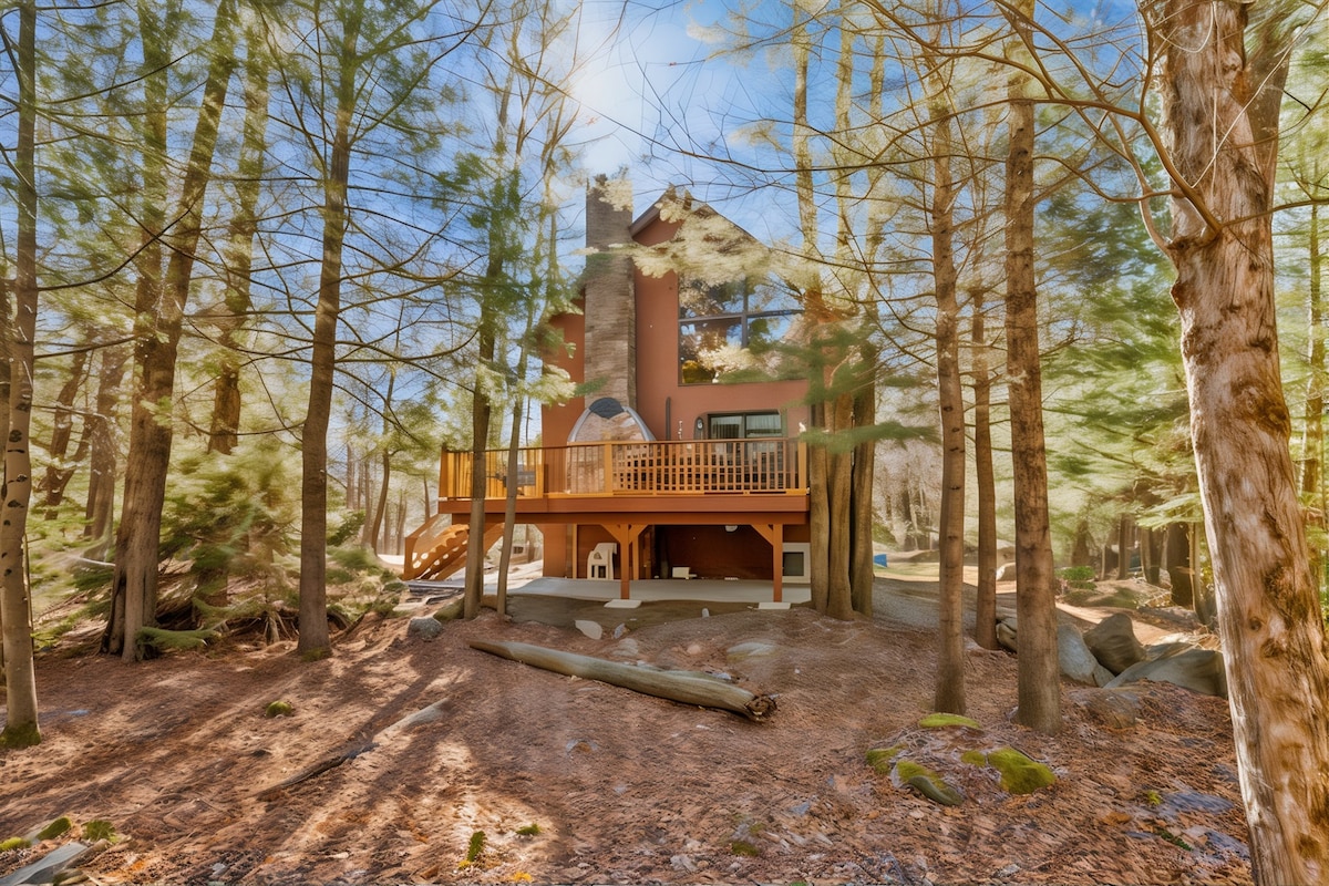 Spustelėkite viršutinį dešinįjį kampą, kad išsaugotumėte ♥ Slinkite, kad rastumėte kontaktą 🗨- mielai atsakysite į klausimus! Atsipalaiduokite ir atsipalaiduokite mūsų žavingame nuomojamame būste, įsikūrusiame vaizdingų Pocono kalnų širdyje, Harmonijos ežere, Pensilvanijoje. Mėgaukitės jaukiais vakarais prie židinio ir dainuokite karaokę žaidimų kambaryje! Mėgaukitės jaukiais vakarais prie židinio, pasivaikščiojimais po miesto centrą ir begaliniais nuotykiais lauke, esančiu už kelių žingsnių nuo Le Petit poilsio namelio. Atraskite išskirtinį poilsį mūsų atostogų namuose, puikiai tinkančius didelėms grupėms priimti.