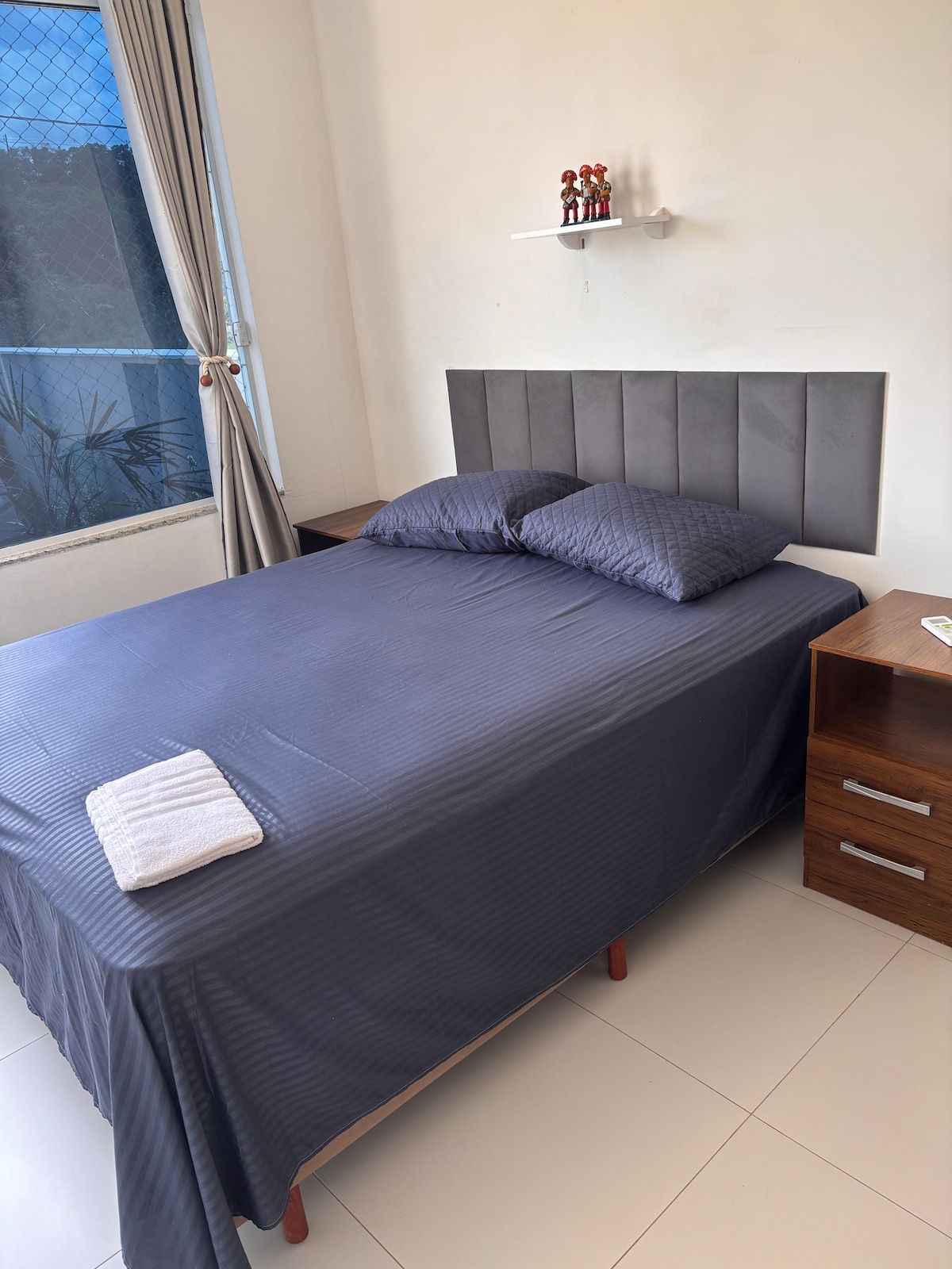A suíte conta com varanda e hidromassagem. Acomoda 2 adultos em uma confortável cama queen e até 2 crianças em camas auxiliares (sem cobrança de taxas). O acesso é fácil e seguro, com asfalto até o condomínio. Aceitamos pets de pequeno porte com algumas regrinhas: não subir em sofás, camas ou poltronas. Obs 1.: no inverno, piscina em manutenção. Obs 2.: condomínio com casas em construção, o que pode gerar barulho durante a semana (final de semana não há trabalho de construção)