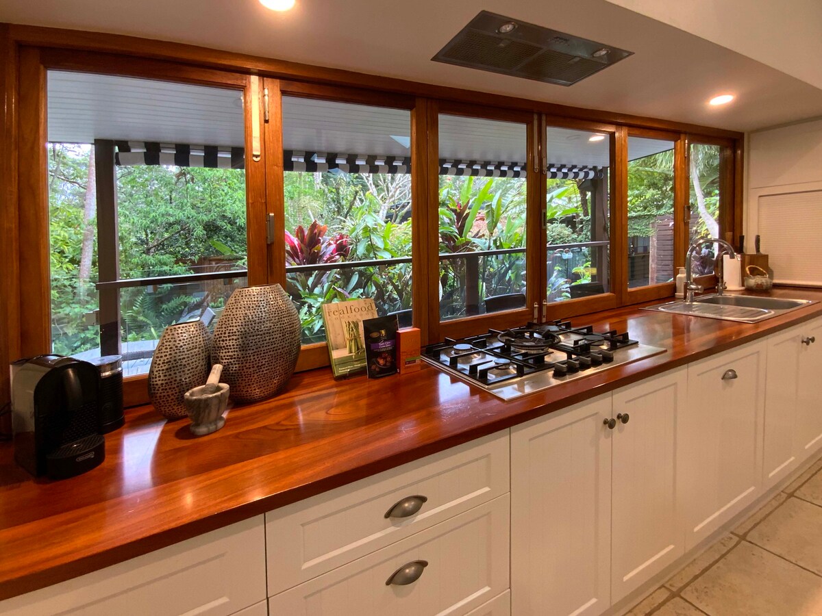 Vila „fig Tree“, saugoma 500 metų senumo figmedžio, įsikūrusi tarp Bangalow palmių ir su vaizdu į Ewingsdale upelį, siūlo puikią ramią ir išskirtinę išvyką. Vos už 5 minučių kelio automobiliu nuo Bairono įlankos paplūdimių, restoranų ir parduotuvių, pasijusite lyg būtumėte kitame stebuklingame pasaulyje, o iš jo išvykti nenorėsite. Mėgaukitės nuostabiais interjerais ir aukščiausios klasės patogumais, įskaitant Netflix, šioje išskirtinėje atskiroje viloje, kurioje turėsite daugiau nei du akrus ir upelį sau.