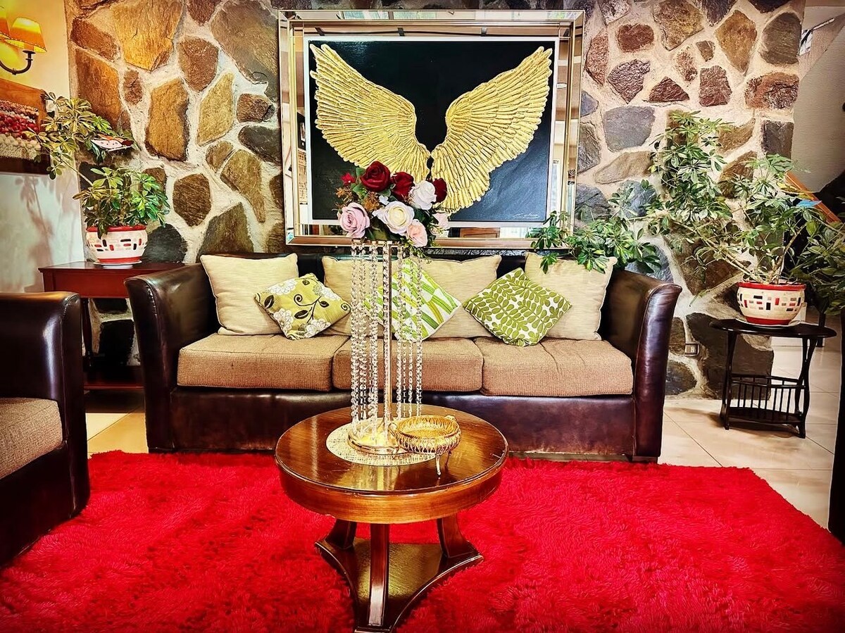 Žavingas dvivietis miegamasis kolonijiniame name su lėtai degančia virykle ir privačiu vonios kambariu apartamentuose. Vaizdas į sodus, baseiną ir galinį koridorių. Įskaitant pusryčius ir prieigą prie quincho, baseino, koridorių ir didelių sodų. Vos už 1,5 km nuo 5 kelio.