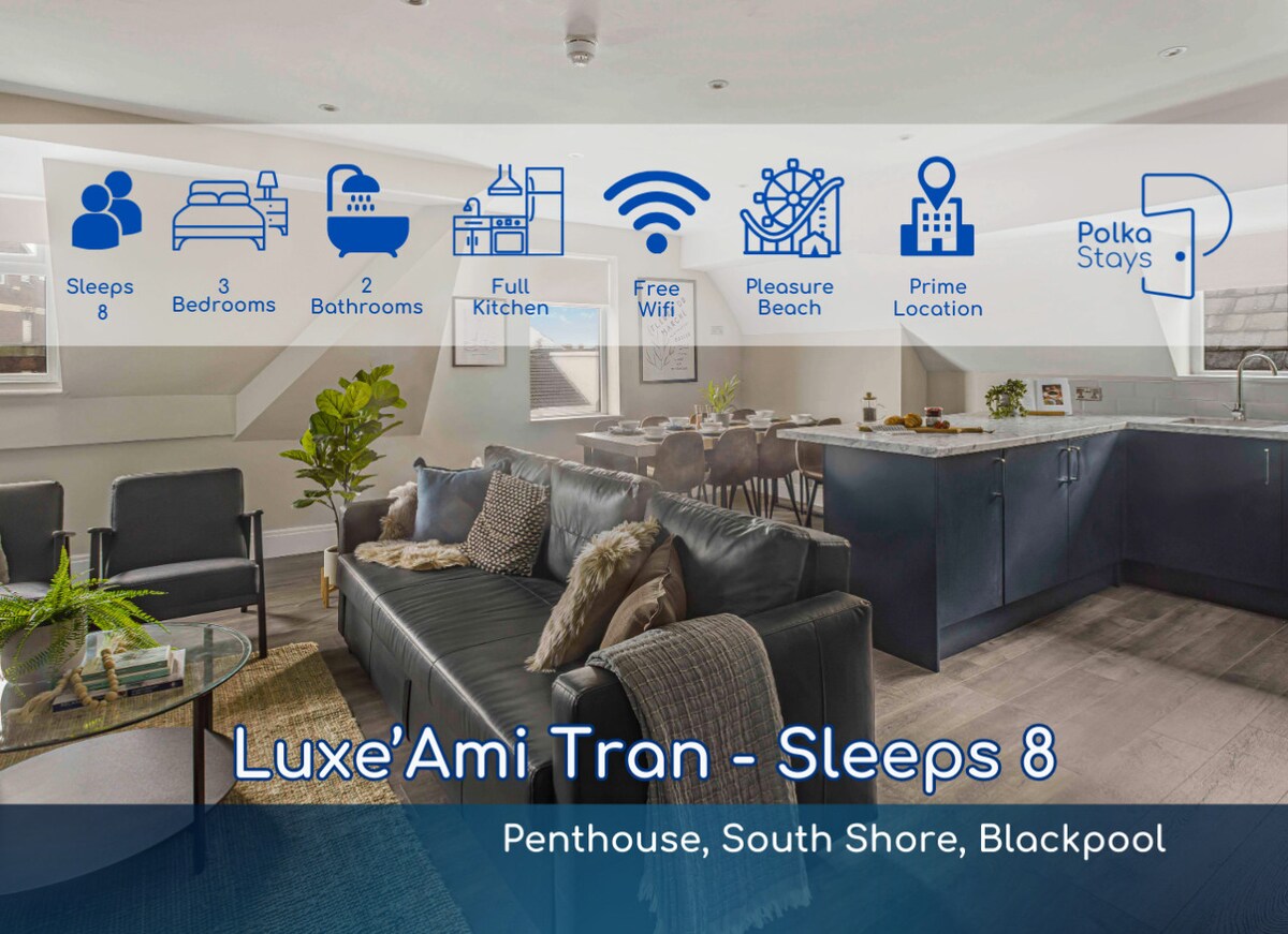 Hydeaway, Lytham St. Annes – unikalus 5 lovų namas 11 svečių. Šiuolaikiškas, erdvus, idealiai tinka šeimoms, grupėms ar verslui. *Automobilių stovėjimo aikštelė 6 automobiliams taip pat su elektromobilio įkrovimo tašku, kaip matyti nuotraukose. *5 miegamieji, 3 su kambariais - televizorius kiekviename miegamajame. *Pirmame aukšte esantis atskiras kambarys, tinkamas riboto judumo asmenims (neprieinamas neįgaliųjų vežimėliams). *4,5 vonios kambario, pilnai įrengta virtuvė, nemokama automobilių stovėjimo aikštelė iki 5/6 automobilių, didelis sodas su kepsnine.