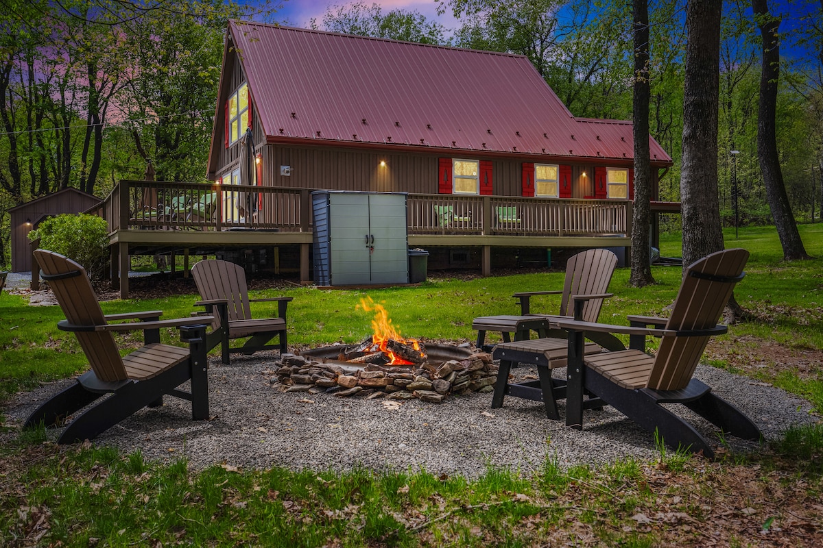 Sveiki atvykę į mūsų Sweet Retreat! Įsikūręs 2 valandas į rytus nuo Pitsburgo ir vos už 30 minučių kelio nuo Altoonos, Blue Knob All Seasons Resort yra puiki vieta pabėgti nuo gyvenimo chaoso. Ateikite ir mėgaukitės mūsų atviros koncepcijos virtuve ir gyvenamąja erdve, kurioje yra 3 miegamieji (viršuje atviras loftas, 2 miegamieji apačioje), 1 1/2 vonios kambario, malkomis kūrenamas židinys nuo grindų iki lubų, 3/4 apvyniojimo terasa su sėdimomis vietomis ir laužavietė kieme.