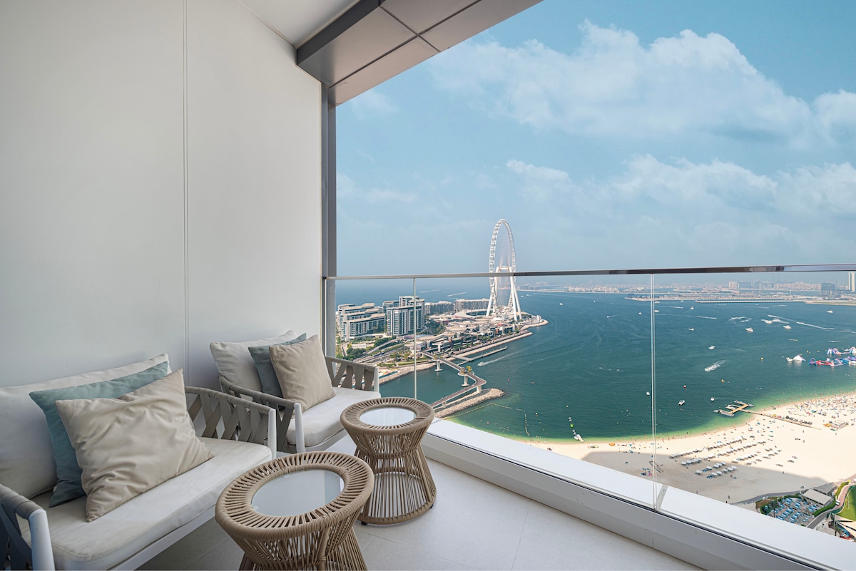 Sveiki atvykę į pabėgimą paplūdimyje JBR širdyje! Šis masyvus 1830 kv. pėdų 2 BHK butas yra naujai renovuotas su aukščiausios klasės dizainerių apdaila. Vienas geriausių vaizdų iš visų kambarių su vaizdu į 🏝️ Bluewaters salą , 🎡 Dubajaus akį, 🌊 Arabijos jūrą ir 🌴Palm Jumeirah Garsusis JBR paplūdimys ir pasivaikščiojimas yra jūsų pėdomis. Jus apsups geriausi vietovės restoranai, kavinės, paplūdimio klubai ir parduotuvės, viskas, ko jums reikia, yra vos už kelių žingsnių Apsistosite tinkamoje vietoje!