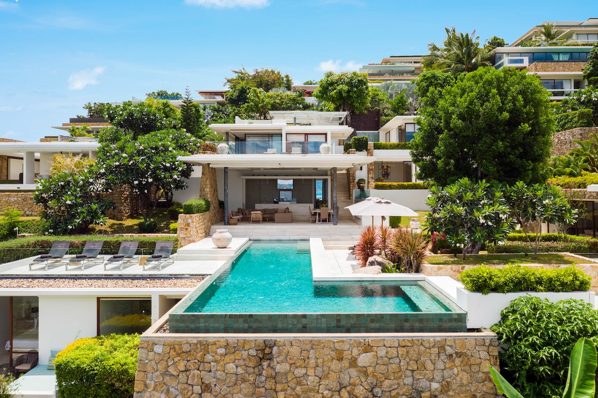 Villa Orca, managed by Inspiring Living Solutions, is a stunning five-bedroom sea-view villa in Koh Samui’s north-east. Designed in a modern tropical style, it blends natural textures, open spaces, and elegant comfort — perfect for families or friends seeking a stylish island escape.