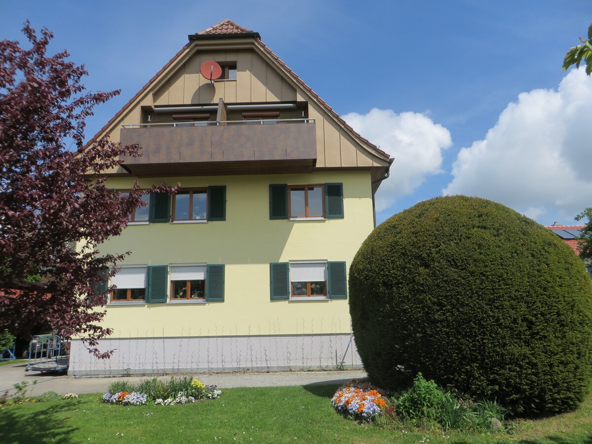 A special retreat, located close to the city and at the same time in the middle of nature: This is the Junior Suite (no kitchen) Perfect for travelers who like walking, jogging, cycling, relaxing at Lake Constance (20 min.) or hiking or skiing in the Alps (approx. 1 hr.). Ravensburg (5 km) with 50,000 inhabitants invites you to go shopping and visit various sights. Very popular with children is the attraction park Ravensburger Spieleland (11 km). Breakfast can be booked for an extra charge.