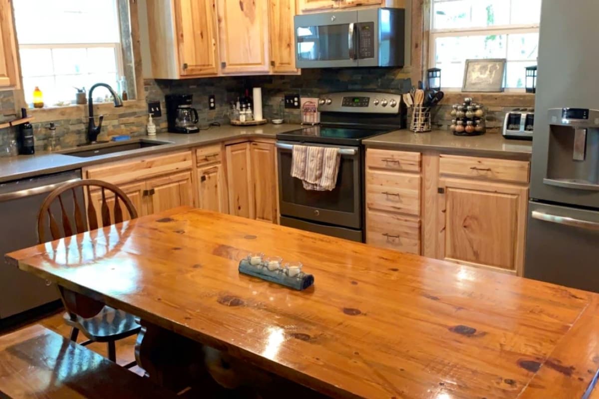 Susipažinkite su Ozark kaimo gyvenimu vos už kelių minučių kelio nuo miesto. Atraskite mūsų 1/4 mylios miškingą taką. Ieškokite elnių, laukinių kalakutų ir įvairių dainuojančių paukščių. Sėdėkite aplink laužavietę žavėdamiesi žvaigždžių baldakimu. Pasinaudoti šalia kotedžo esančia iškylos ir žaidimų aikštele. Užmigkite ir klausykitės tolimo traukinio švilpiko aido. Stonecrest kotedžas buvo pastatytas 2020 m. 5 vaizdinguose akruose, galvojant apie AirBNB svečius. Atvykite ir patirkite šią ramią aplinką, apsuptą Misūrio apsaugos žemės.