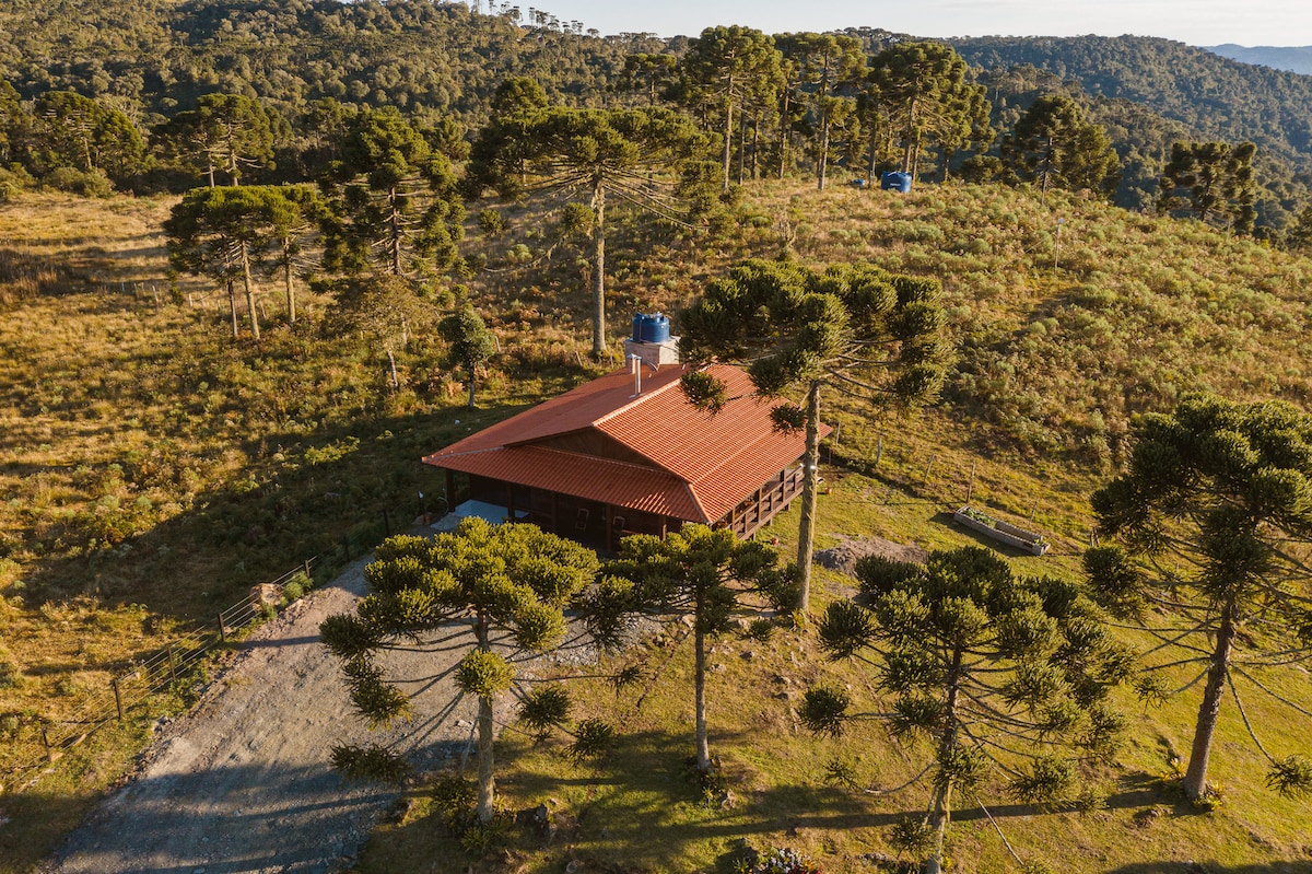 Mūsų autentišką kalnų poilsio namelį supa araukarijos miškas. Galite pailsėti balkone iki upės ir paukščių garsų, atsipalaiduoti vonioje ir išgerti vyno priešais židinį. Pilnai įrengtas jūsų patogumui, jame yra jaukus dekoras ir standartinė viešbučio lovų ir vonios patalynė. Dėl kaimo kondominiumų saugumo mūsų išskirtinis būstas yra už 25 minučių kelio nuo Urubici miesto centro. Vos už 5 minučių kelio pėsčiomis yra krioklys ir kiti kriokliai bei takai