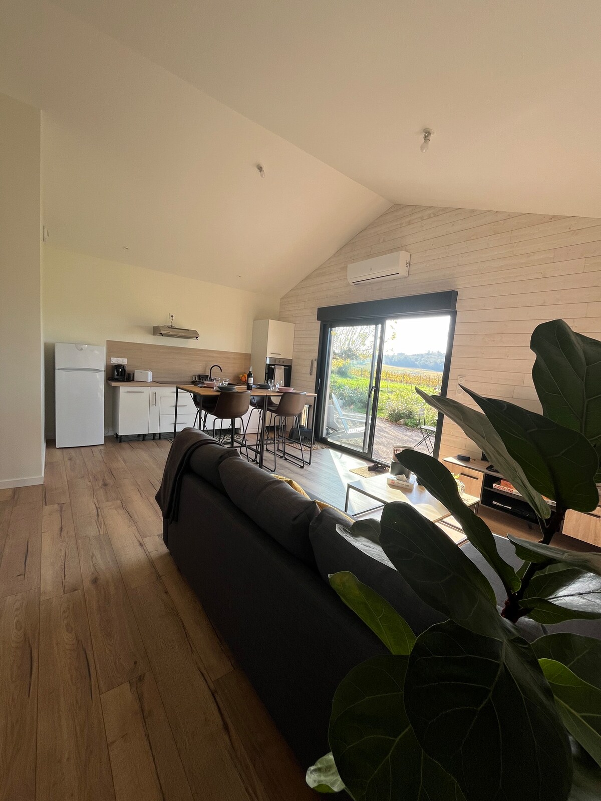 Įsikūręs tarp vynuogynų su nepertraukiamais vaizdais į aplinkinius miškus. Šis vaizdingas akmeninis namas siūlo šiuolaikišką interjerą su visais to reikalingais dalykais pabėgti nuo kasdienybės. Ideali vieta dienos išvykoms į Bordo, Bergerac, St Emilion arba Arcachon, Biaritz ar Saint Jean de Luz, jei norite apsilankyti pakrantėje.