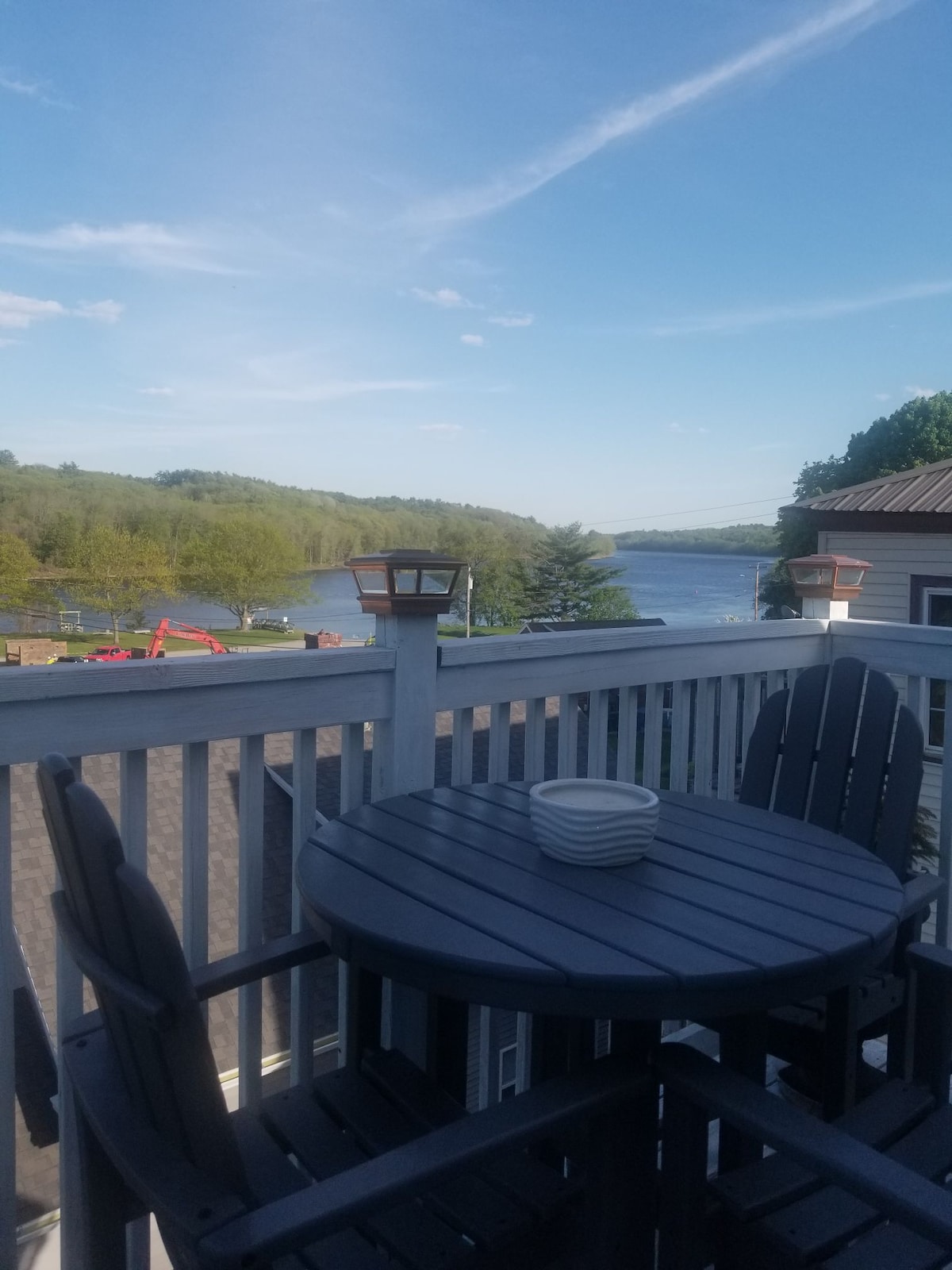 The unit is located in a 7-room house NOT occupied by the owners. Entry is through a common door next to the parking spot. Apartment entrance is at the top of the second floor and secured with a keyless lock. You have the entire third floor to yourselves. There is a well-stocked, full kitchen/TV room either four power recliners and balcony overlooking the Kennebec River. The bedroom has a queen bed with second TV and spacious, tiled bathroom.