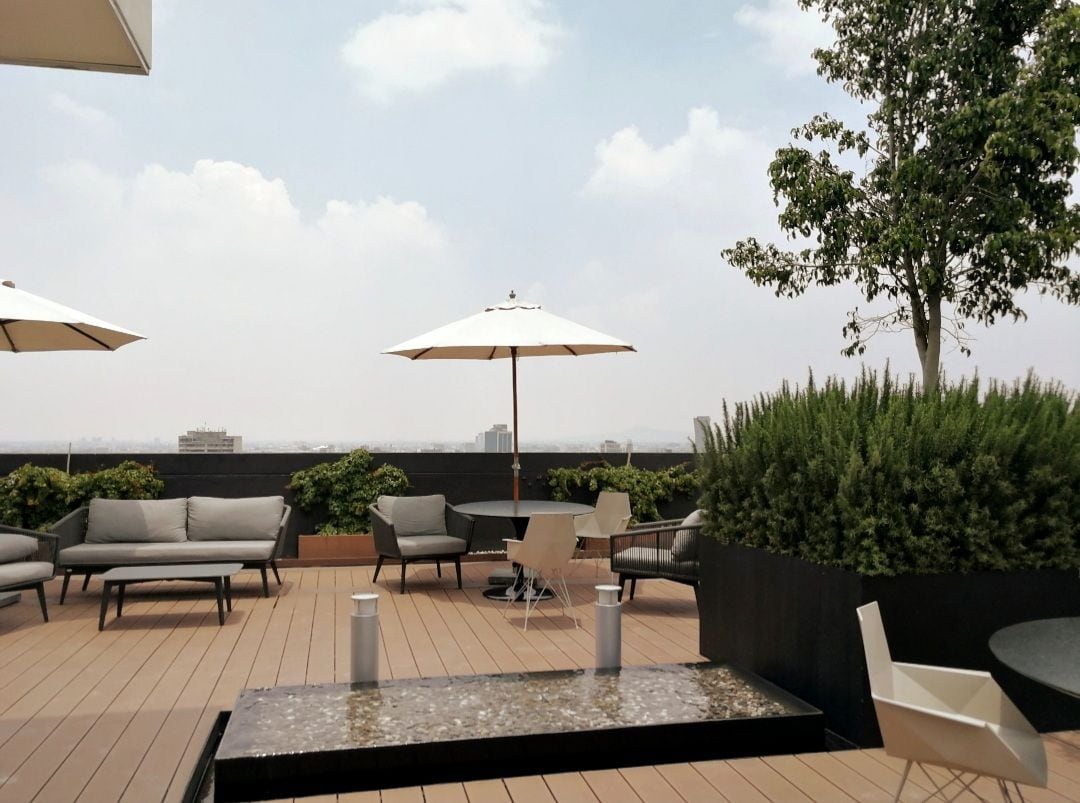 Bosque de Chapultepec: populiarūs patogumai būstuose su sėdimoms vietoms lauke