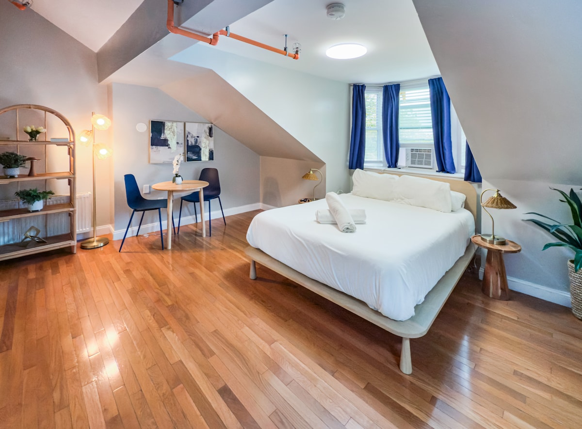 Erdvus loftas Bostono centre, istoriniame rajone, su aukštomis lubomis, dideliais langais, originaliomis medinėmis grindimis, privačios miegamojo zonos lova, taip pat sofa svetainėje gali tapti ištraukiama karališko dydžio lova. Taip pat yra šoninė kėdė, kuri paverčiama gultu arba dvigule lova. Vonios kambaryje yra dušas ir vonia, visa virtuvė ir skalbykla. Butas taip pat siūlo didžiausią spartą vietovėje - 1 gig interneto prieigą ir 55colių išmanųjį televizorių.