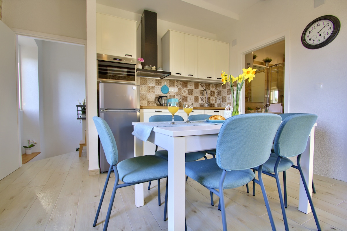 Romantic and elegant stone house completely renovated and furnished in a modern fashion, situated in an elevated position in the village of Žman in a reserved and quiet location but at the same time close to all essential services.