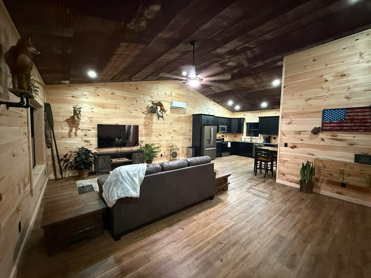 Escape to Pine Ridge, a centrally located lakefront retreat near Mammoth Cave National Park. Perfect for families, couples, groups, or remote workers, this versatile home offers a gourmet kitchen, high-speed Wi-Fi, dedicated workspace, smart TV, washer/dryer, and free parking. Relax in the outdoor space, explore Rough River Lodge, or enjoy dining and live music at Nick’s Marina. With self check-in and family-friendly charm, your Kentucky lake getaway blends comfort, convenience, and adventure.