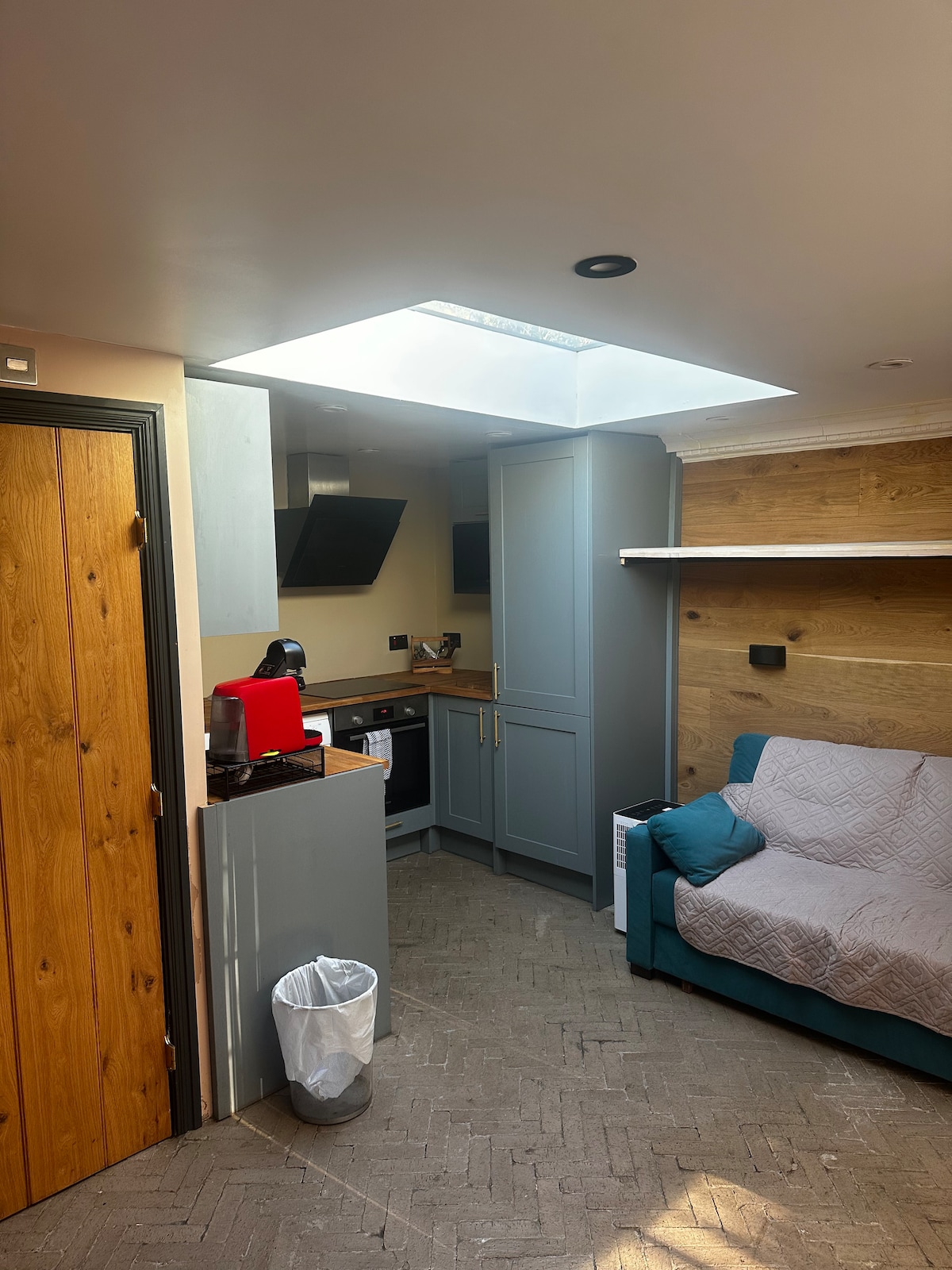 Stilingas ir visiškai naujas studijos tipo butas Patirkite komfortą ir stilių šiame pirmame aukšte esančiame studijos tipo bute su atskiru įėjimu. Mėgaukitės visa virtuve, gražia dušo kambariu ir karališko dydžio sienine lova, kurioje yra daugiau erdvės. Įsikūrę ramioje gatvėje Golders Green, Didžiajame Londone, esate vos už 4 minučių kelio pėsčiomis iki metro ir netoli Brent Cross prekybos centro, restoranų ir parkų. Puikiai tinka turistams ar poroms, ieškančioms jaukaus pabėgimo. Užsisakykite dabar ir leiskitės į nuotykį Londone!