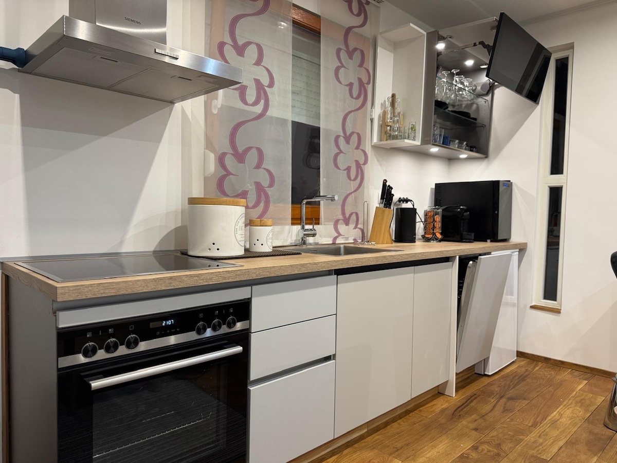 Napomena: Sauna je trenutno izvan funkcije. Ispričavamo se na neugodnosti. Ovaj jedinstveni smještaj uređen je u nesvakidašnjem stilu. Udaljen samo 1 km od centra grada u mirnom okruženju s pogledom na park. Smještaj odiše modernim stilom i glamurom. Lijepo uređena kupaonica i sauna učinit će vaš boravak nezaboravnim iskustvom.