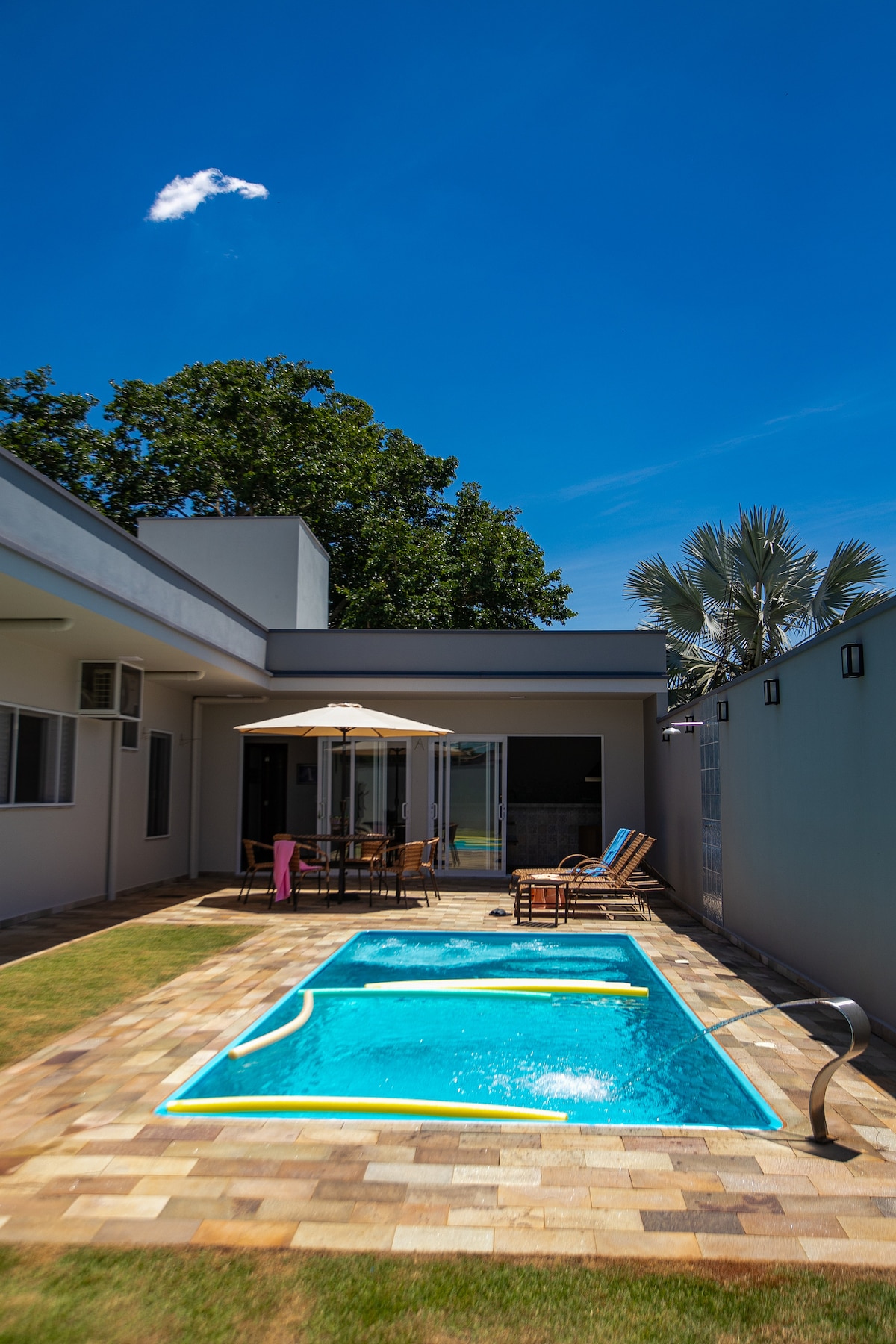 Bem-vindo à Casa Verde! Espaçosa, recém-reformado e com piscina privativa, no centro de Brotas. Ideal para famílias e grupos que buscam conforto, privacidade e praticidade – tudo a poucos passos dos principais pontos da cidade. São 5 quartos, (3 suítes ) com lençóis e travesseiros e mais 2 banheiros. A sala de TV e jantar são integradas e ampla! Espaço Incrível da churrasqueira e forno de pizza! Pague em 6x sem juros Preço base: 4 pax CHECK-IN APÓS 16H E CHECK-OUT ATÉ 11H.