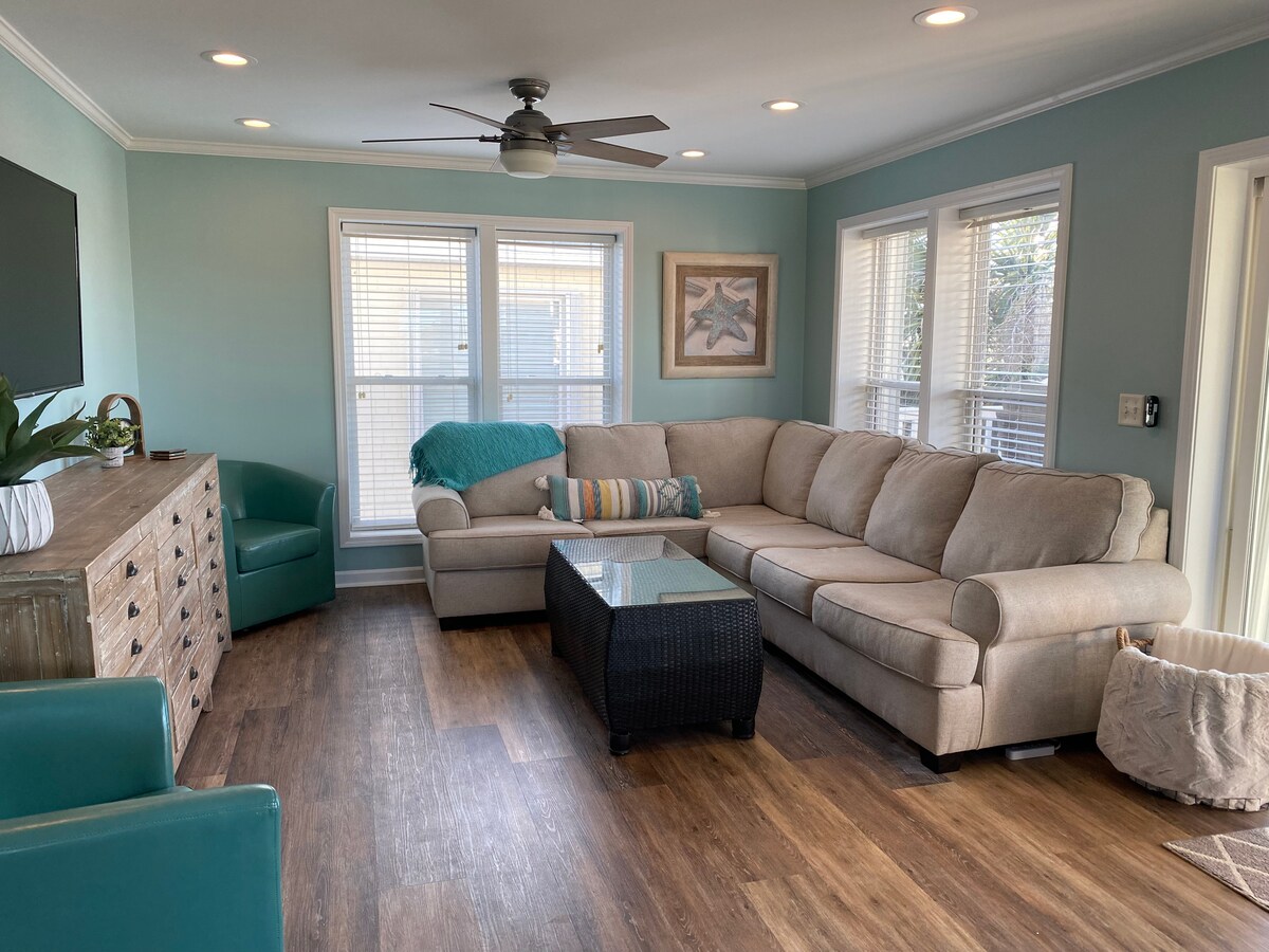 Summerfell offers what beachfront rentals can't; three screened porches with fans, a fully fenced private yard for the kids and dogs, and a downstairs entertainment room with ping pong and TV—all just a 7-10 minute walk to the beach. No traffic noise. No crowds. Just a peaceful, golf cart friendly wooded neighborhood where families actually relax. Premium finishes, fully equipped kitchen, sleeps 8. This is Oak Island for people who want space, not just proximity.
