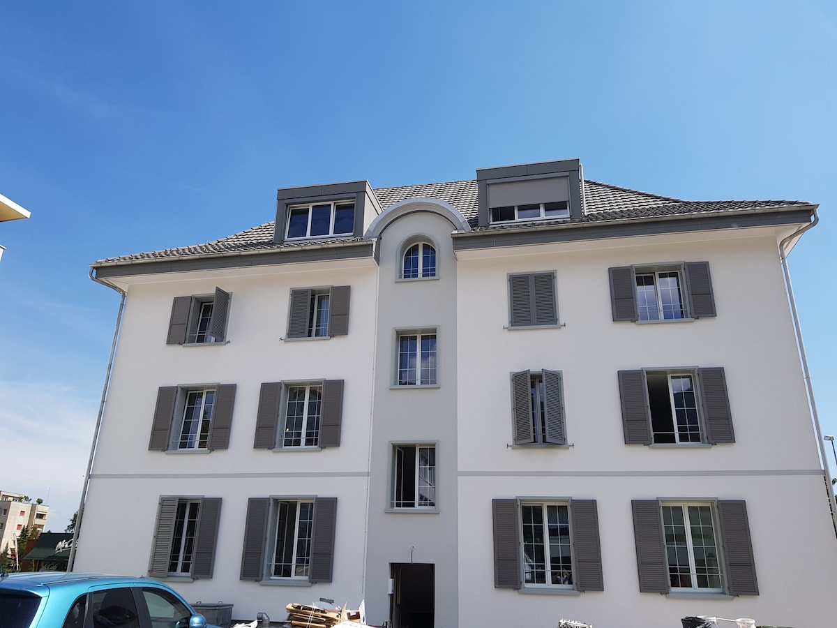 Atostogos su istoriniu žavesiu! 3,5 kambario butas istoriniame pastate, kuris yra labai centre, vaizdingo Büren an der Aare miesto senamiestyje. Puiki vieta apsistoti!