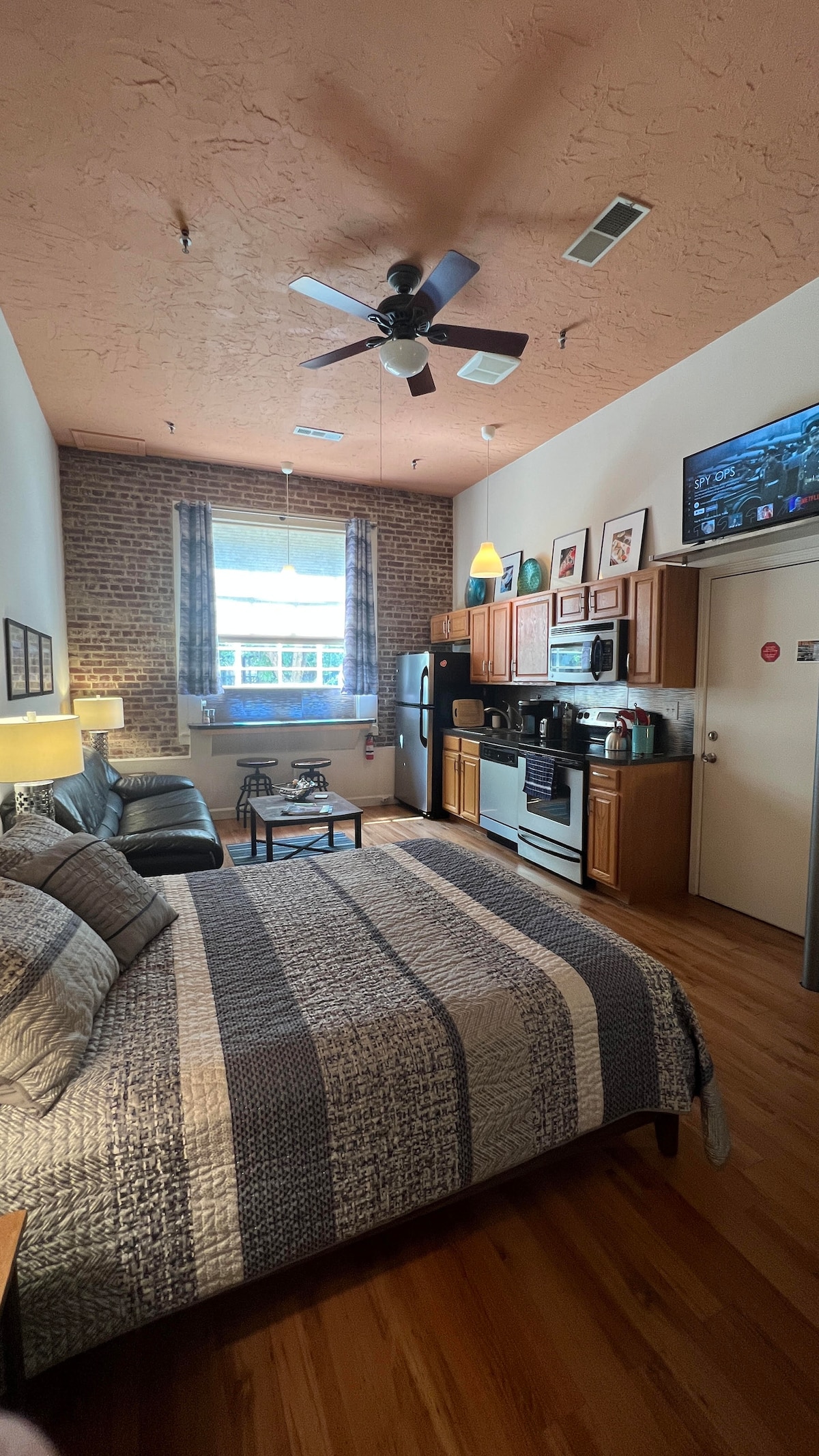 Downtown studio space. 50 inch smart tv. Complimentary coffee & Wine .Glass spacious shower. View of Downtown Mercedes Benz Stadium. Walking distance to State Farm arena . A delicious restaurant next door. 5 minutes away from Georgia aquarium. Stackable washer & dryer. FREE PARKING & Wi-Fi. $125 if key fob is lost ‼️ Please DO NOT contact leasing office at all , they can not assist you. Give me a call at ANYTIME ‼️ Absolutely NO SMOKING in building ‼️ NO PETS ‼️ Check in:1pm Check out:11am