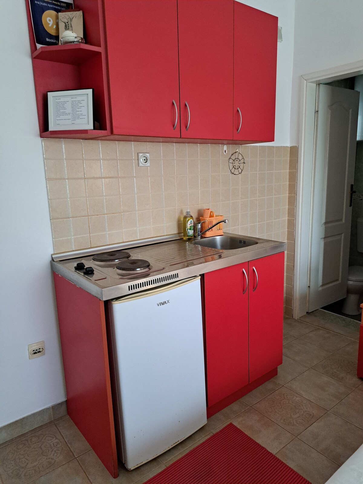 Tai labai kuklus nedidelis studijos tipo butas, idealiai tinkantis vienišiems keliautojams ar jaunesnėms poroms, kurie neieško prabangos ir komforto,o pirmenybę teikia puikiai vietai ir kelionėms. Didžiausia šio būsto vertė yra jo vieta.Gebėjimas atsikelti ryte ir padaryti vos kelis žingsnius, kad galėtų maudytis, arba tiesiog mėgautis savo laiku labai gražioje mažoje terasoje, kol yra apsuptas alyvmedžių ir laurų medžių, yra tai, kas suteikia vertę šiai mažytei studijai.Prašome perskaityti aprašymą!