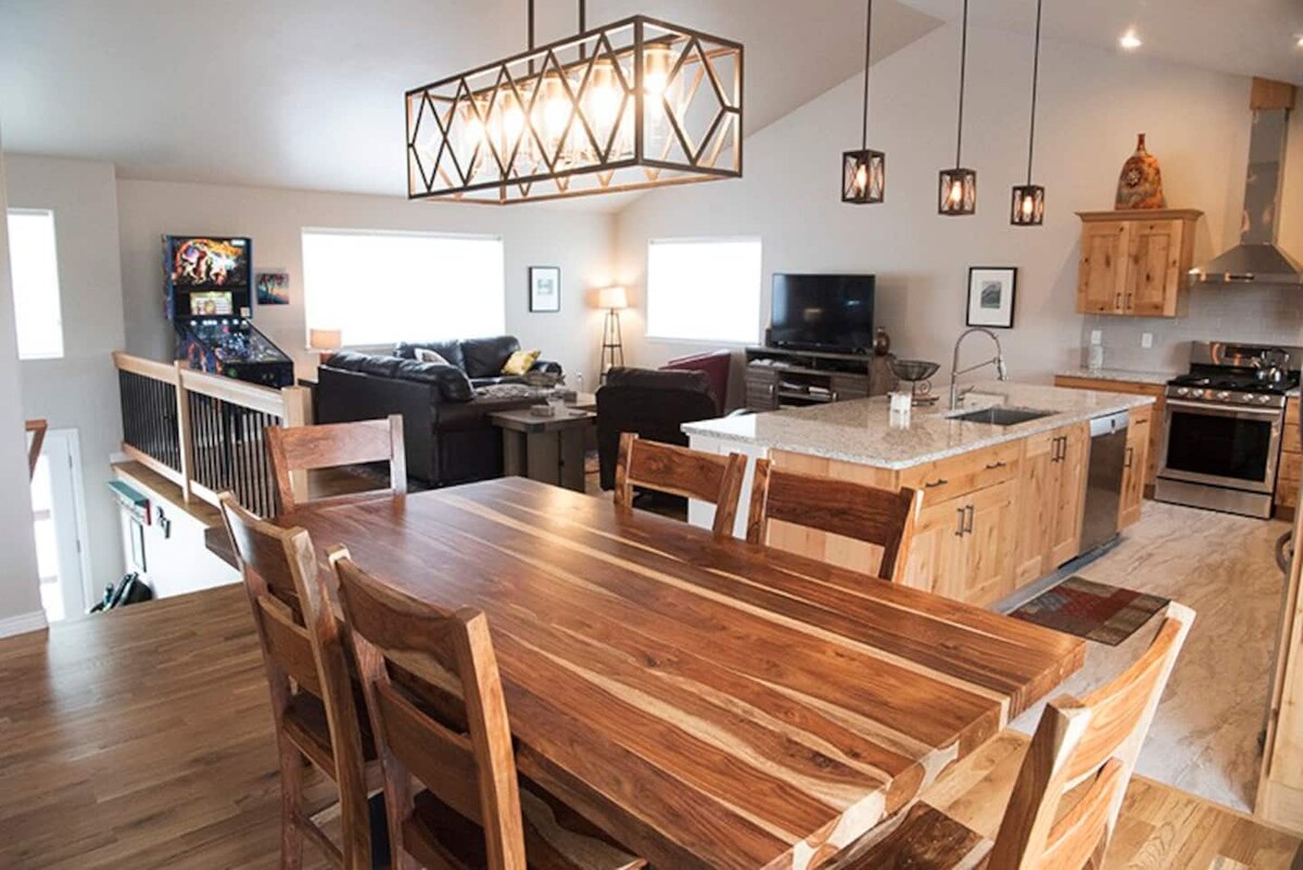 Įsikūręs vos už BV ribų. Šie rami, erdvūs, šunims draugiški namai yra 2 akrų sklype. Natūrali šviesa iš visų langų SU nuostabiais kalnų vaizdais. Tai rančos stiliaus namas su atvira erdve, virtuve, didele sala ir puikiais prietaisais. Yra 5 miegamieji ir sofa-lova, 3 vonios kambariai, skalbykla, 3 televizoriai ir belaidis internetas. Taip pat yra papildomas žaidimų kambarys su pulu ir stalo futbolu. Aptvertas kiemas šunims su terasa ir laužaviete. Prie lauko durų, nukreiptų į gatvę, yra „Ring“ kameros durų skambutis.