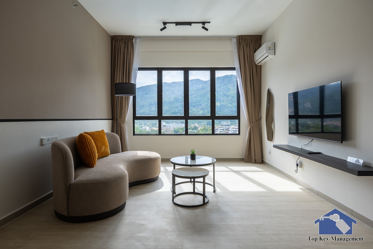 Mūsų visiškai naujas jaukus liukso numeris yra puikiai įsikūręs Penango širdyje, lengvai pasiekiamas vietos turistų lankomoms vietoms. Japonų/korėjiečių restoranai ir 7-11 patogumų parduotuvė yra tiesiai po mūsų namais! Vietinis maistas, KFC ir Pizza Hut yra už 5 min. kelio pėsčiomis! Teikiame • Puikios svetingumo paslaugos • Saulėtekio ir miesto vaizdas • PS3 pramogos ir Netflix • 1 privati automobilių stovėjimo aikštelė • 100 Mbps Wi-Fi • Vaizdas į „Infinity Pool“ • pilnai įrengtą oro kondicionierių Jei jums patinka rami ir jauki vieta šiame judriame mieste, nelaukite, užsisakykite dabar!!