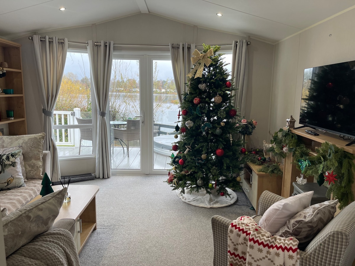 Prie ežero esantis 6 (+kūdikių) namelis . Nuskendusi sūkurinė vonia ant didelės rakinamos terasos su lauko sėdimomis vietomis. Žaidimai / DVD / knygos / žaislai/aukšta kėdutė / kelioninė lovelė. 3 miegamieji (1 dvivietis kambarys, 2 dviviečiai miegamieji ir kūdikis kelioninėje lovelėje ). Du vonios kambariai - vienas su dušu, vienas su vonia. Televizorius poilsio kambaryje ir pagrindiniame miegamajame. Tinka augintiniams. Įskaičiuota patalynė, rankšluosčiai ir pan. Automobilių stovėjimo vieta 2/3 automobiliams. Galimos pertraukos - pirmadienis-penktadienis / penktadienis arba 7 naktys didelio užimtumo laikotarpiais.