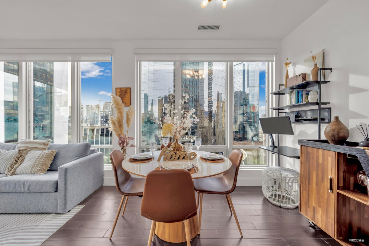Nuostabus vaizdas iš daugiau nei 30 aukštų Vankuverio centre. Šiuose saugiuose namuose yra 3 miegamieji ir 2 vonios kambariai su privačiu balkonu, nukreiptu į pietvakarių rytus, yra daug natūralios šviesos, iš kurių atsiveria unikalus vaizdas į False Creek į miesto centrą. Pastatas yra už kelių žingsnių nuo prekybos centro „International Village Mall“, „T&T Supermarket“, „Costco“, „Rexall“ vaistinės ir „Starbucks“. Iki stadiono Skytrain stoties vos kelios minutės. Jums nereikia automobilio, bet yra 1 nemokama saugi automobilių stovėjimo aikštelė.