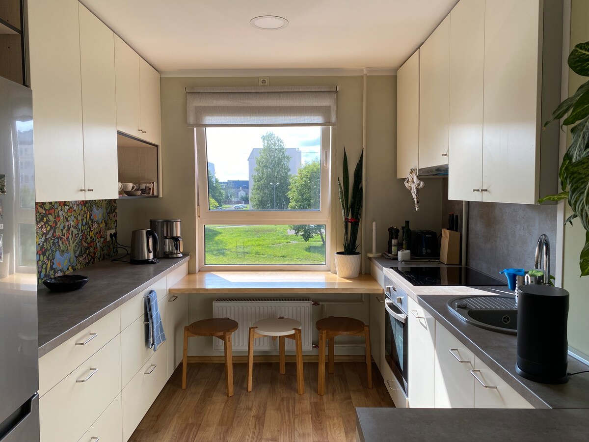 Jaukus 34 kv. m 5 aukšto butas su gražiu saulėlydžio vaizdu. Tinka 1 arba 2 svečiams. Netoli kelių parduotuvių, autobusų stotelės ir 10 minučių pėsčiomis nuo miesto centro. Yra visiškai funkcionali virtuve ir vonios kambariu. Svetainėje/miegamajame yra ištraukiama sofa, tinkanti 2 asmenims. Taip pat yra nemokamas Wi-Fi, televizorius, rašomasis stalas ir lygintuvas. Nemokama automobilių stovėjimo aikštelė priešais pastatą arba netoliese esančios parduotuvės.