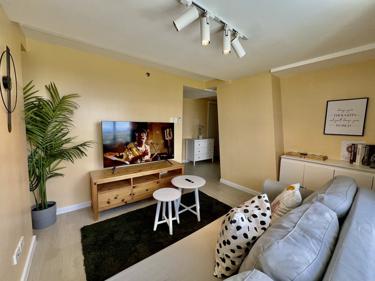 Iš mūsų Balio įkvėptos studijos iš privataus balkono atsiveria kvapą gniaužiantys vaizdai į dirbtinį paplūdimį. Atsipalaiduokite su puodeliu kavos ir mėgaukitės vaizdu! Šioje studijoje yra karališko dydžio lova, skirta „Netflix“ ir „chill“, pilnai įrengta virtuvė namuose pagamintiems patiekalams ir daug pramogų, pvz., PS4, karaokė ir stalo žaidimai. Netoliese esančios lankytinos vietos: • 5 min. kelio automobiliu iki SM Pampanga, Robinsons ir S&R • Netoli kavinių ir restoranų • 35 min. kelio nuo Klarko tarptautinio oro uosto