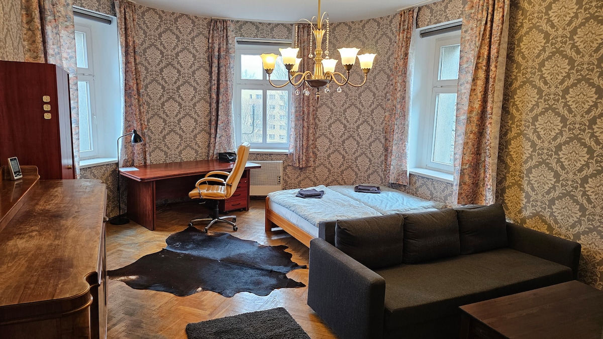 Saulėtas, patogus butas Pirmajame rajone. Įspūdingas vaizdas 10-ame aukšte! Daugiau nei 100 m2 erdvė (įskaitant 20 m terasas) - 2 privatūs rakinami miegamieji ir darbo vietos, taip pat dar 2 miegamosios vietos svetainėje. Puikiai tinka vienišiams, poroms ir verslo keliautojams su šeima arba be jos. Puiki vieta netoli Spodek, NOSPR ir Kongresų centro. Pastate yra parduotuvė, kirpykla, tailandietiško masažo salonas, Kamecki vyno skonis.