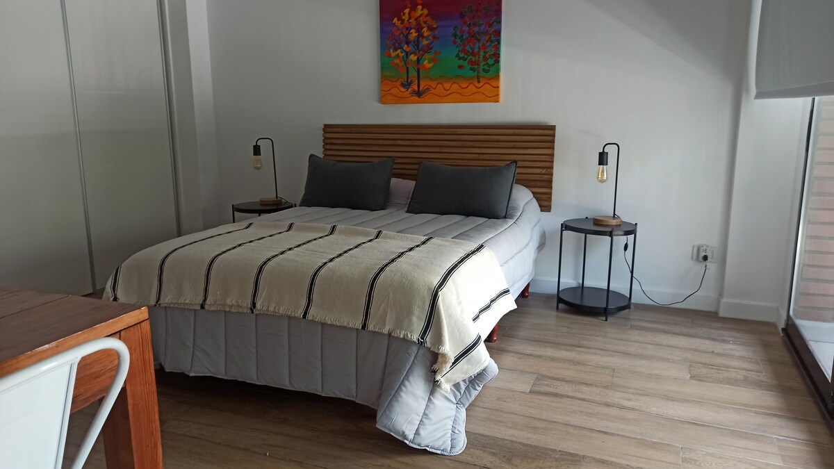 Butas su 2 kambariais įspūdingame Green Haus Belgrano komplekse doho gastronominiame stulpelyje. Saugumas 24 val. Visi patogumai. ŠILDOMAS VIDAUS baseinas ištisus metus ir neuždengtas vasarą, quincho, sporto salė, vaikų zona. 300 MB Wi-Fi maksimali sparta, puikiai tinka nuotoliniam darbui. Miega iki 4 svečių. Nuolaida ilgalaikėms viešnagėms. Garažas už papildomą mokestį Prieiga prie skaitmeninės spynos