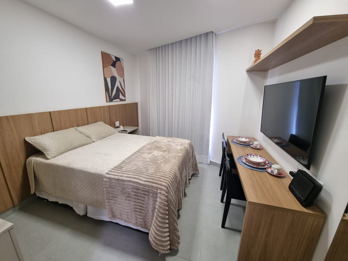 35 m² butas, esantis geriausioje João Pessoa vietoje: prie jūros nuo Cabo Branco! Turėsite itin patogų butą su patalyne, Wi-Fi, SmarTV, indais, stalo įrankiais ir keliais kitais patogumais, būtinais jūsų gerovei! Bendro naudojimo erdvėje yra baseinas, restoranas, automobilių stovėjimo aikštelė ir susitikimų kambarys. Teritorija yra labai saugi ir lengvai pasiekiama viskuo, ko jums reikia (barais, kepyklomis, vaistinėmis, prekybos centrais, geriausiais mieste).