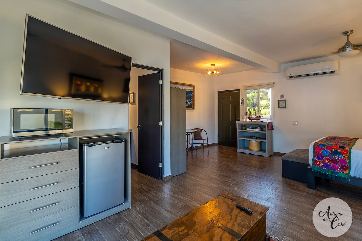 Mūsų studija yra išties vertinga, pažiūrėkite! Graži ir patogi meksikietiško stiliaus studija, kurioje yra Kalifornijos karališko dydžio lova, svetainė, privati terasa su hamaku, privatus vonios kambarys, oro kondicionierius, patalynė, Wi-Fi, baseinas ir mes esame draugiški augintiniams už papildomą 25 USD mokestį. Apsistosite išskirtiniame San Chosė del Kabo meno rajone ir istoriniame miesto centre, apsuptame bažnyčios, parduotuvių, estuarijos, paplūdimio, restoranų, barų, vietinio turgaus, galerijų.