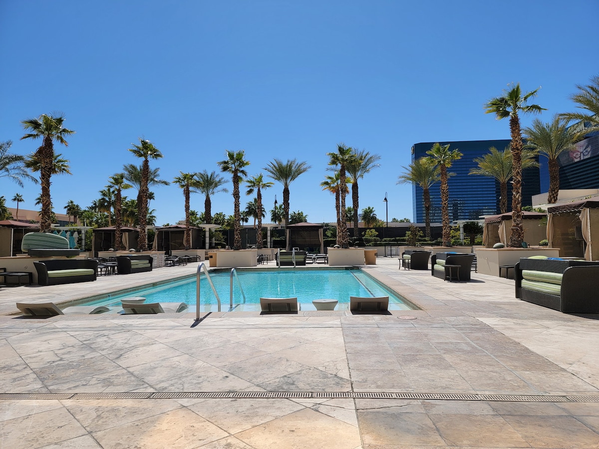 Jei lankotės LV ir norite apsistoti @ Vdara arba netoli Stripo, NEIEŠKOKITE DAUGIAU! Mūsų apartamentai yra 50-ame Vdara Hotel & Spa, kuris nėra kazino, nerūkantis, liukso klasės viešbutis MGM miesto centre. Mėgausitės viešbučio stiliaus atvykimu/išvykimu ir patogumais (Wi-Fi, baseinu, sporto sale) nemokėdami papildomų kurorto mokesčių ar rinkliavų. Pagrindinis užsakyme nurodytas asmuo turi būti bent 21 metų amžiaus ir atvykti turės turėti galiojantį asmens tapatybės dokumentą ir kredito/debeto kortelę.