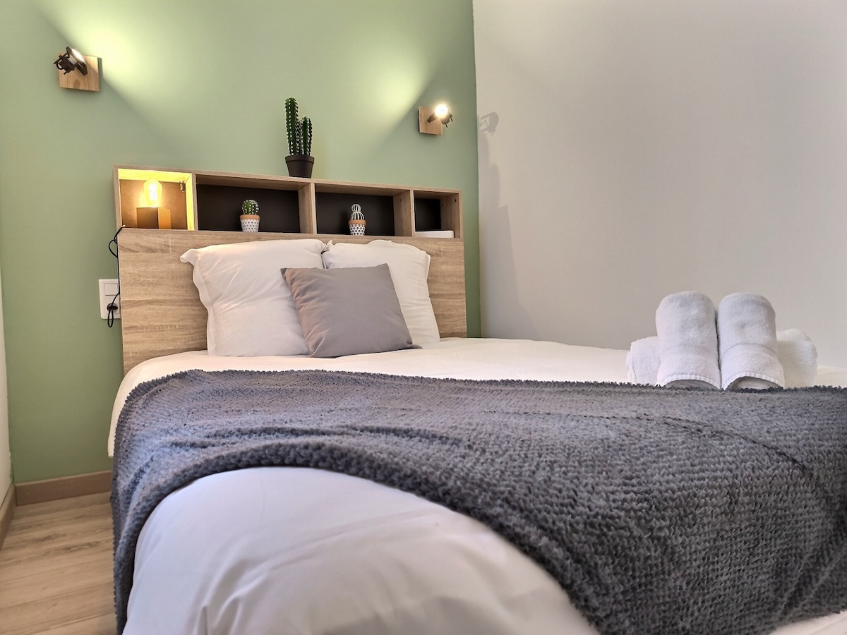 3☆ kategorijos „Įrengtas turizmas“ (2022 m.) 2 miegamųjų butas yra saugioje gyvenamojoje vietoje su privačia dengta automobilių stovėjimo aikštele, 5 min. pėsčiomis iki miesto centro, sporto kompleksų, baseinų, prekybos centro, 2 min. iki Voie Verte. Jaukus remontas, įrengta virtuvė, Wi-Fi, grįžtamasis oro kondicionierius (2024 m. gruodžio mėn.). Butas siūlo patogumus ir ramybę profesionaliems, turistiniams, gastronominiams arba paprastiems atokvėpiams pakeliui į atostogas. Jis neskirtas riboto judumo asmenims.