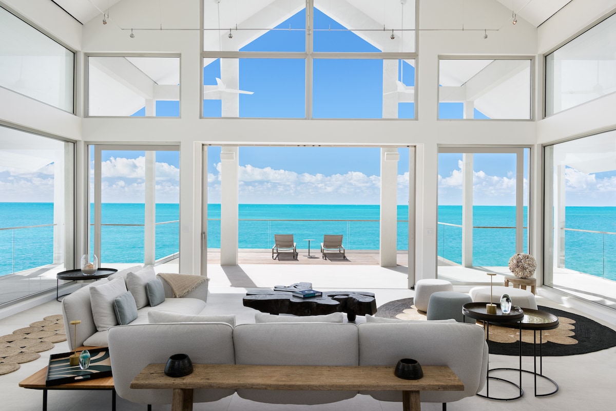 Situated by oceanfront with uninterrupted views of the turquoise waters, La Mer West offers luxury villa rentals in Sapodilla Bay, Providenciales. The home provides a European touch to modern Caribbean architecture, unique to rental villas in Turks and Caicos Islands. This well-appointed, staffed villa is situated right on the ocean’s edge and offers a seamless blend of indoor and outdoor living across 7,500 square feet.