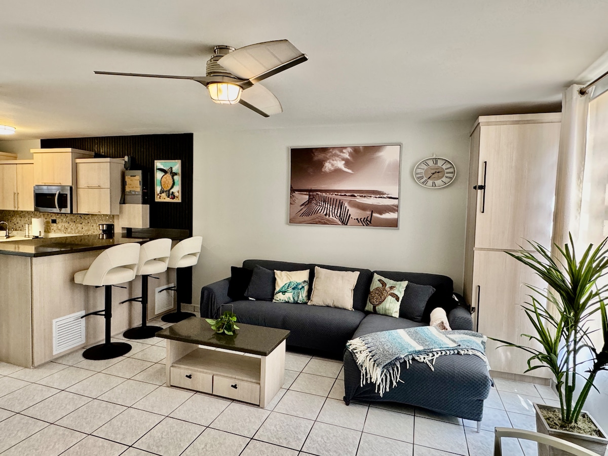 Neseniai renovuotas 2 miegamųjų / 1 vonios kambario butas Corcega rajone, vos už kelių žingsnių nuo paplūdimio. Mėgaukitės dideliu bendru baseinu su uždara pavėsinė, lauko dušais ir vonios kambariu. Virtuvė pilnai įrengta maisto ruošimui namuose, o svetainėje yra 50 colių išmanusis televizorius ir Wi-Fi. Nedidelis balkonas su bistro staliuku puikiai tinka rytinei kavai. Oro kondicionieriai visuose kambariuose. Netoli restoranų, miesto aikštės, barų, paplūdimių ir sporto komplekso.