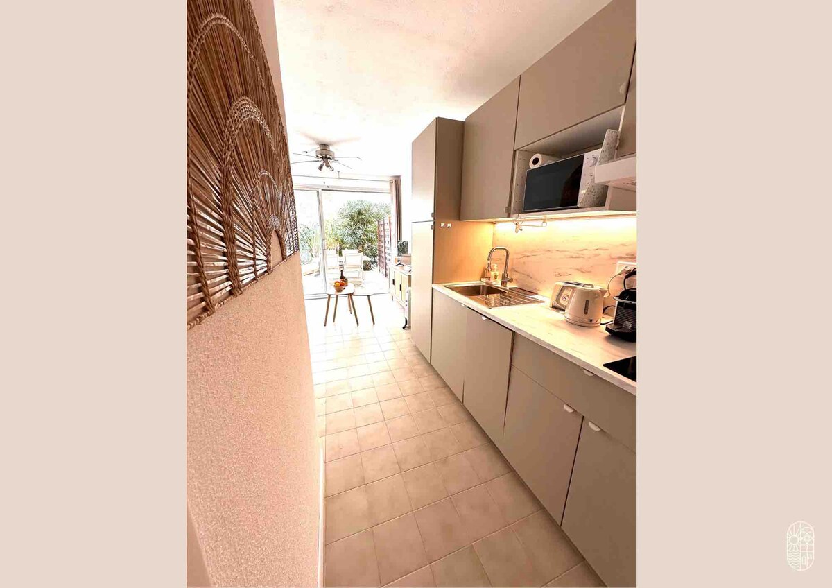 22 m2 studija neseniai įrengtoje rezidencijoje su liftu, privačia ir saugia automobilių stovėjimo aikštele netoli miesto centro, uosto ir paplūdimio. - PMR pasiekiama - dvi 11 ir 4 m2 terasos Apgyvendinimo vieta: - Virtuvėje yra indukcinės lėkštės 2 židiniai,mikrobangų krosnelės su kepsninės funkcija, šaldytuvas, skalbimo mašina - bz 140x190 čiužinys 16 cm -TV šviesos diodas 100 cm - šviesolaidinis internetas - Kavos aparatas , virdulys,skrudintuvas, plaukų džiovintuvas, planča, dulkių siurblys, citrusinių vaisių presas, ventiliatorius su nuotolinio valdymo pultu - sodo poilsio zona