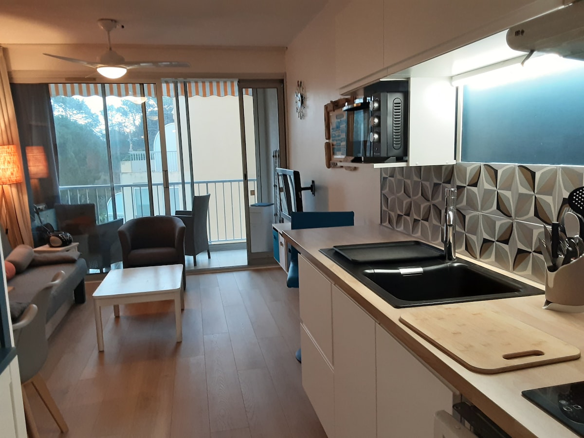 Kalvi pušyne turėsite tiesioginį priėjimą prie paplūdimio be kelio kirtimo parduotuvės netoliese ( super u , prieplauka, kazino už 5 minučių kelio ) vieno miegamojo butas su dvigule lova 140 m. (nauja patalynė)ir greta esančiu vonios kambariu, svetainė su sofa-lova, svetainė su sofa-lova , nauja virtuve ir lodžija, iš kurios atsiveria vaizdas į gyvenamąją vietą. įranga: mikrobangų krosnelė ,orkaitė,skrudintuvas, televizorius, lygintuvas, skėtis, skėtis, ventiliatorius
