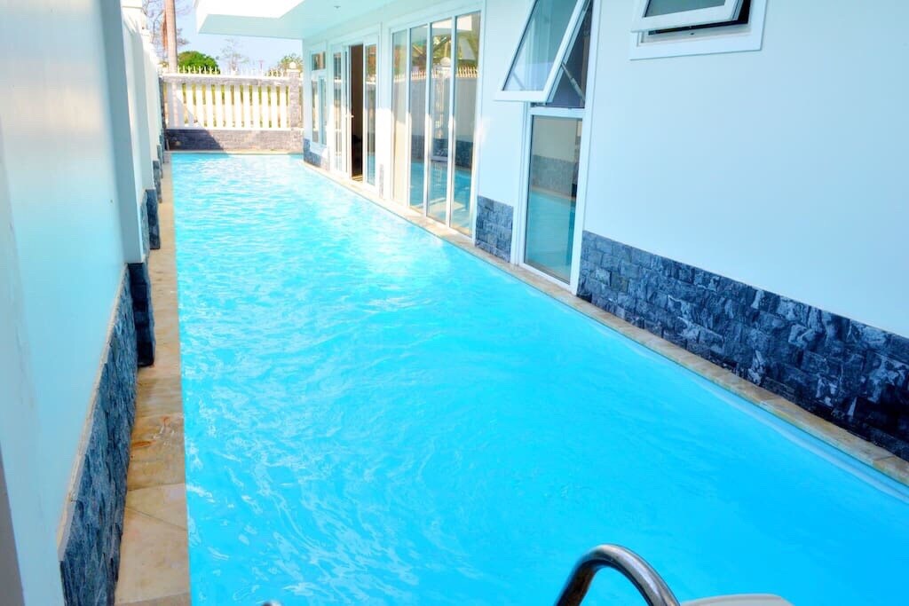 Ocean Front Nha Trang – 7 miegamųjų vila Plotas: daugiau nei 550 m² Konstrukcija: 2,5 aukšto | 7 miegamieji (4 su vaizdu į vandenyną) Rūsys: 2 miegamieji su privačiais vonios kambariais, vyno baras, skalbykla 1 aukštas: didelis baseinas, vešlus sodas, svetainė, pilnai įrengta virtuvė, 2 atskiri miegamieji. 2-as aukštas: 3 miegamieji su privačiais vonios kambariais, pagrindinis miegamasis su vonia Patogumai: Erdvi svetainė ir moderni virtuvė Kepsninė lauke, didelis baseinas