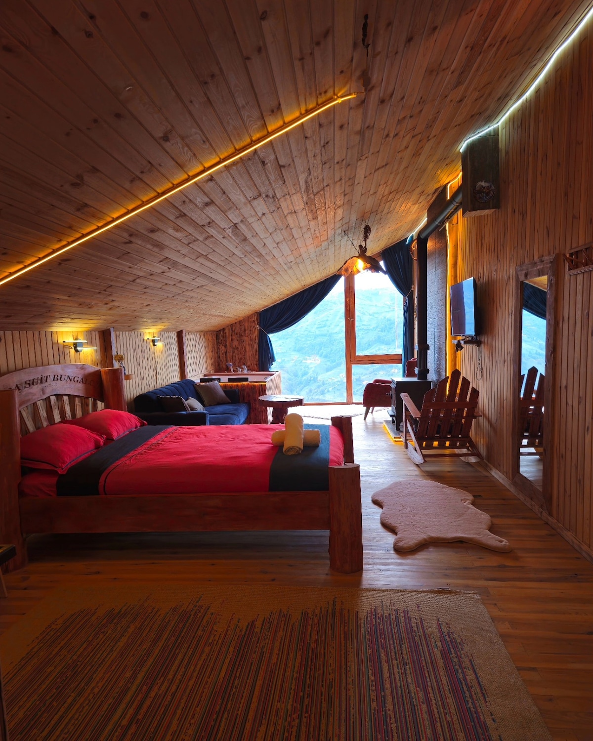 Esate kviečiami į ypatingą patirtį, kuri atitinka komfortą gamtos viduryje. Dėl medinių, lofto tipo grindų ir stilingo dizaino, erdvios ir didelės struktūros jis puikiai tinka tiek romantiškoms poroms, tiek šeimoms. Medienos tekstūros šiluma kartu su židiniu (krosnimi) ir nuostabiu vaizdu sukuria unikalią atmosferą. Siūlome nepamirštamą viešnagę su dviem dvigulėmis lovomis, sūkurine vonia, mini turkiška pirtimi, oro kondicionieriumi, panoraminiu stikliniu fasadu ir nuostabiais kalnų, miško ir arbatos sodo vaizdais.