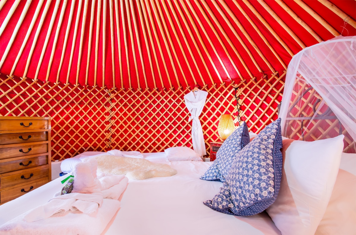 Nuostabi prabangi jurta, 300 m iki paplūdimio, idealiai tinka porai ar šeimai. Smagi glempingo patirtis! Unikalus ekologiškas kaimas, Finca De Arrieta. Miega 2 suaugusieji + 2 vaikai superkaraliaus dydžio dvigulė lova + z lova/kelioninė lovelė, su privačiu W.C/shower nameliu, virtuve, terasa, kepsnine, saulės gultais, aptvertu ir aptvertu sodu. Kadangi tai yra ekologinio kaimo „Finca De Arrieta“ dalis: bendras saulės šildomas baseinas, vištų namas, sąžiningumo parduotuvė, žaidimų parkas ir informacijos namelis su personalu.