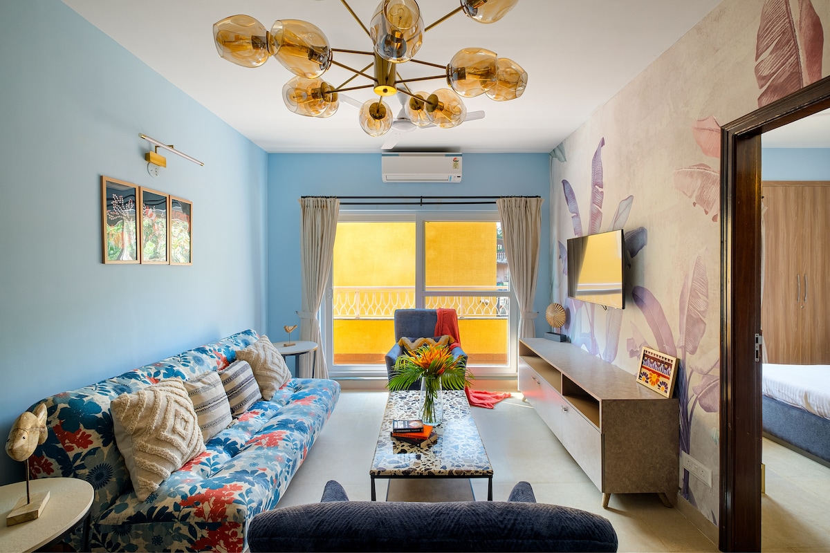 2BHK Luxury Pool view Apt - Candolim 5 min 2 beach