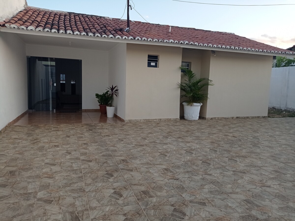Casa novinha, móveis novinhos e com decoração de bom gosto. Fica localizada numa rua tranquila, na mesma rua de um mercadinho e perto de padaria, pizzaria, lanchonete e supermercado. A casa dispõe de WI-FI, TV a cabo com inúmeros canais, área gurmet com churrasqueira, chuveirão e garagem para até dois carros pequenos.