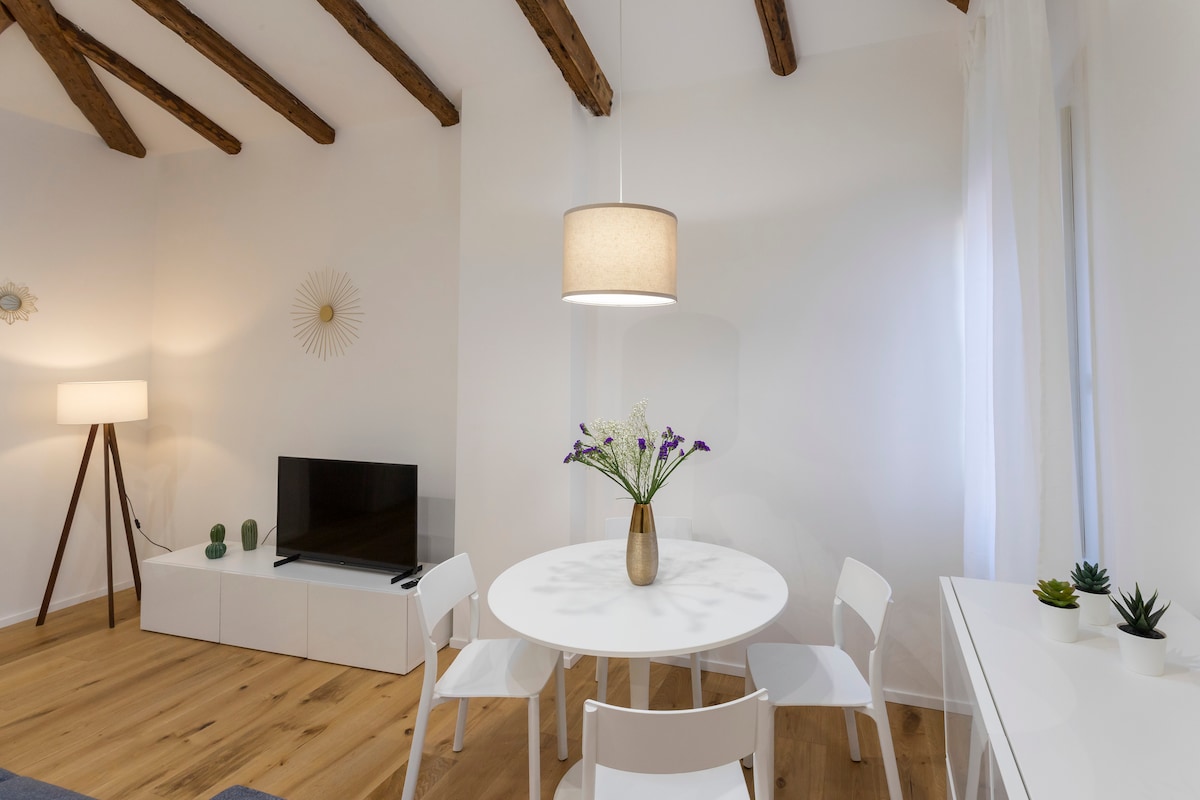 Neseniai restauruotas šviesus butas su ORO KONDICIONIERIUMI ir nuostabiomis medinėmis sijomis žavingo Cannaregio rajono viduryje. Čia rasite visus šiuolaikinius patogumus, puikiai sumaišytus su Venecijos skoniu. Puiki vieta, 10 min. pėsčiomis nuo traukinių stoties, vos keli žingsniai nuo viešojo laivų transporto, vietinių restoranų (ne turistų spąstų) ir barų. Imp: butas yra pastato BE LIFTO viršuje (4 aukšte, puikus vaizdas ir nėra pelėsių). Papildomas mokestis už atvykimą po 20 val. (žr. toliau)