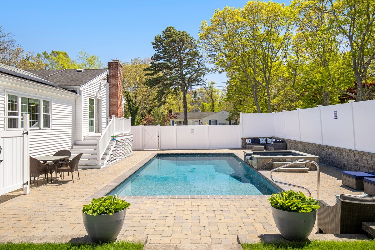 Close to airport, you’ll love backyard beach, water view, pool/grass yard, ambiance and outdoors space. Beach & Pool (POOL HEAT STARTS SUMMER, ENDS 9/1) is a hard to find combination!! Location is private, yet it's close to the 3 largest towns on Martha's Vineyard. Great for couples, families (with kids), and big groups. Enjoy dinner with the indoor/outdoor Sonos music system during a beautiful sunset! NOTE; Rate increase in high season, pool/spa is a combined unit & ONLY heated in summer!